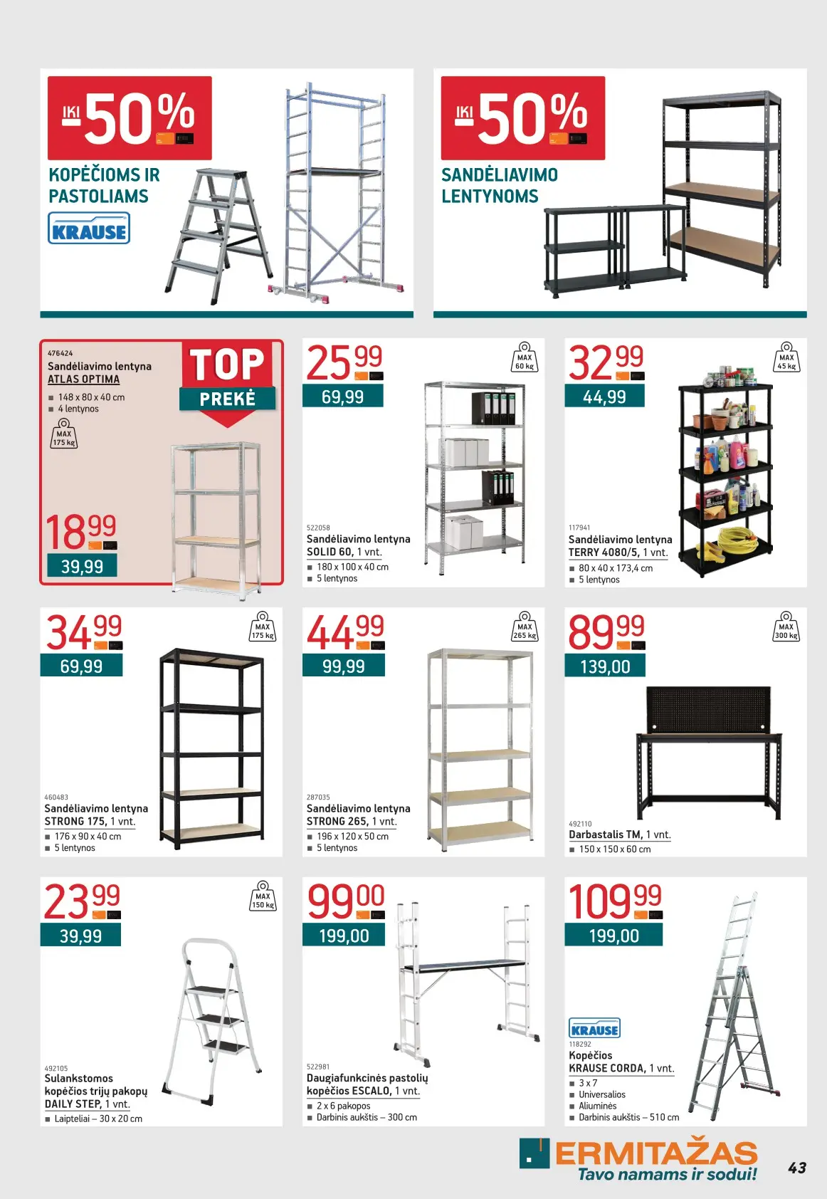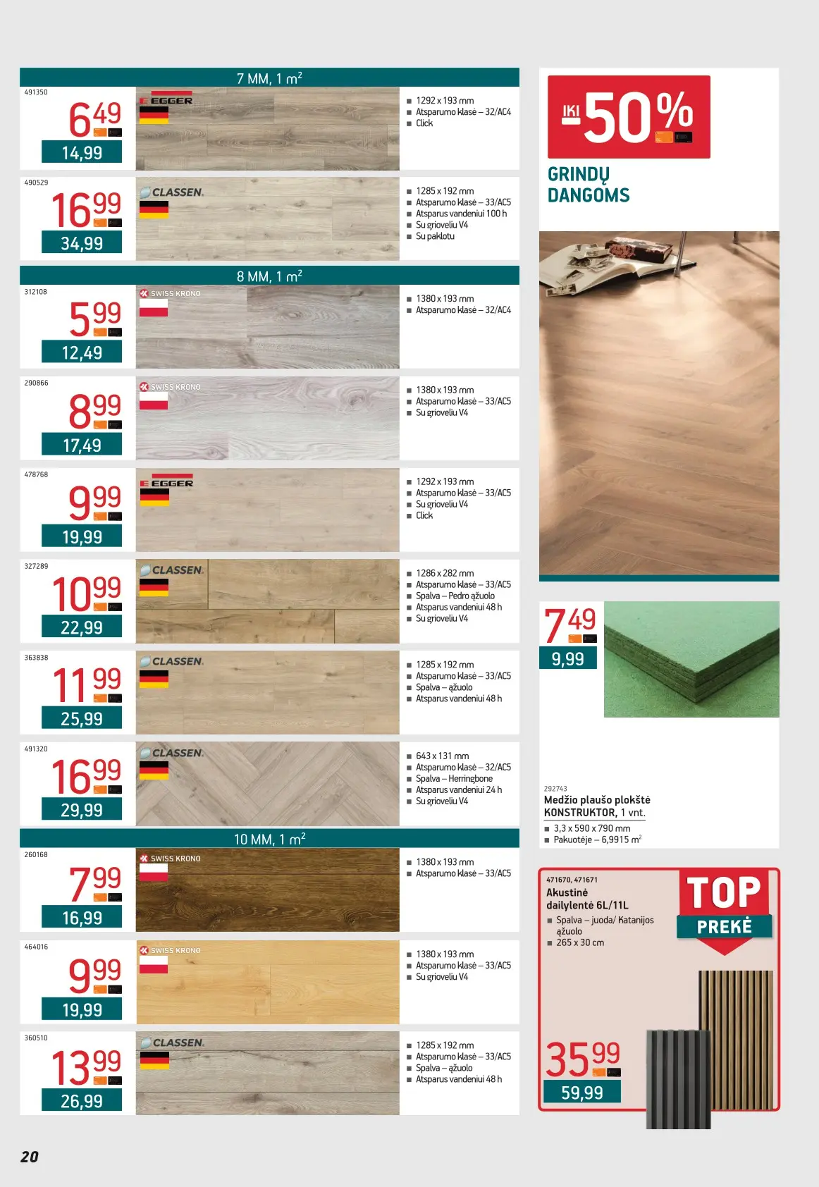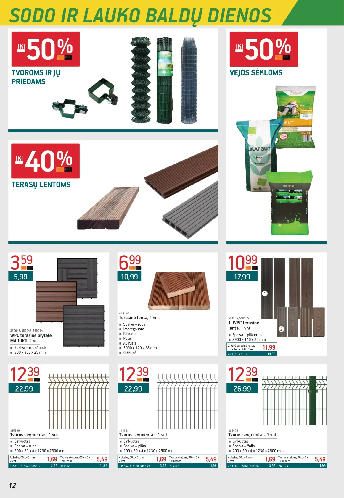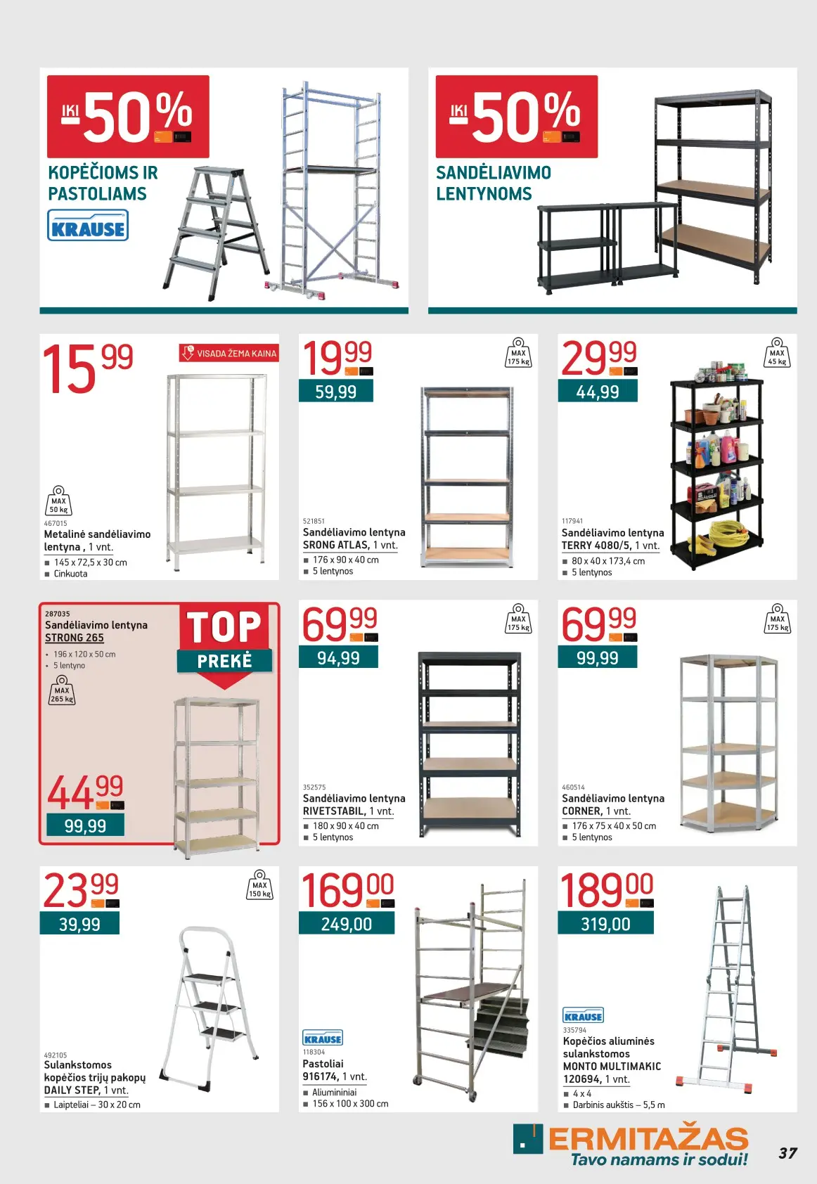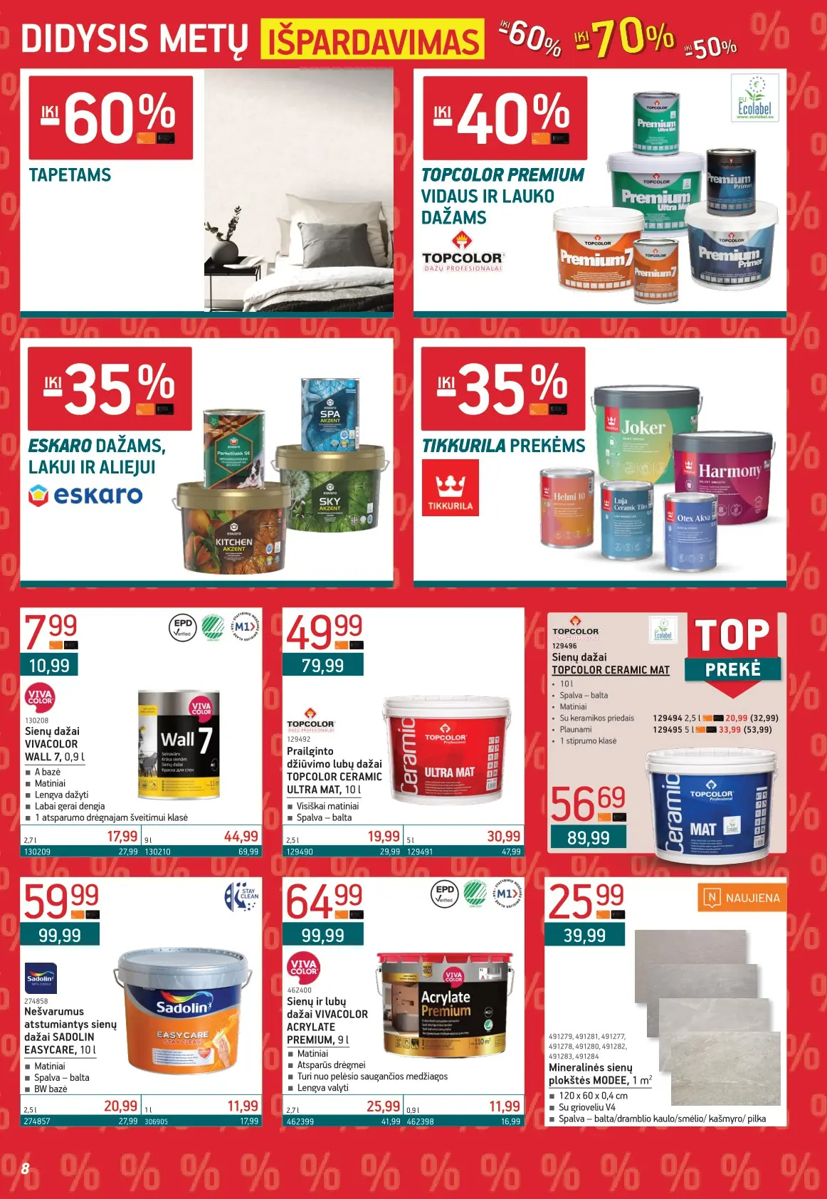 Leidinyje pateikiami pasiūlymai statybinėms medžiagoms, įrankiams, apdailos elementams, sodo ir laisvalaikio prekėms, buities reikmenims bei elektronikai. Čia rasite nuolaidas populiariausiems gamintojams ir prekių ženklams – nuo cemento iki šviestuvų, nuo grąžtų iki skalbimo mašinų.
