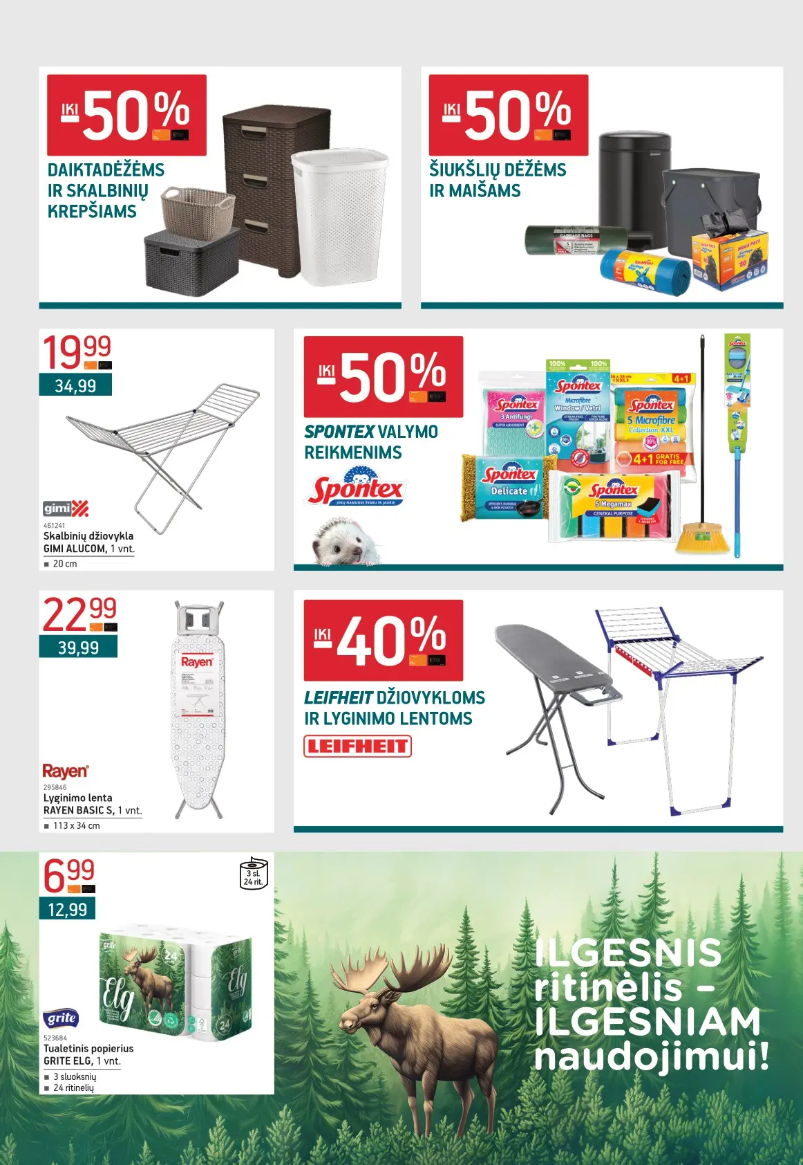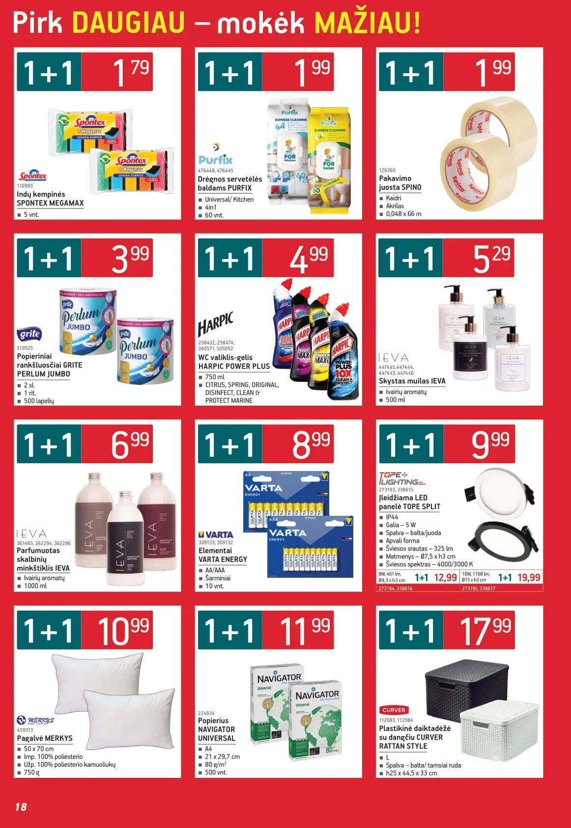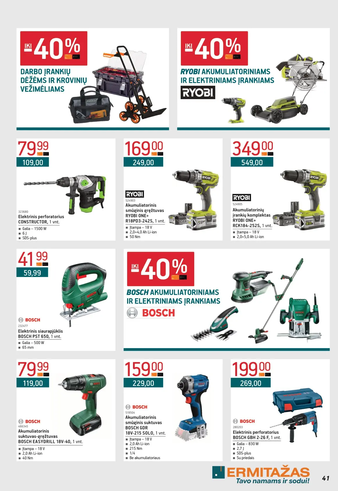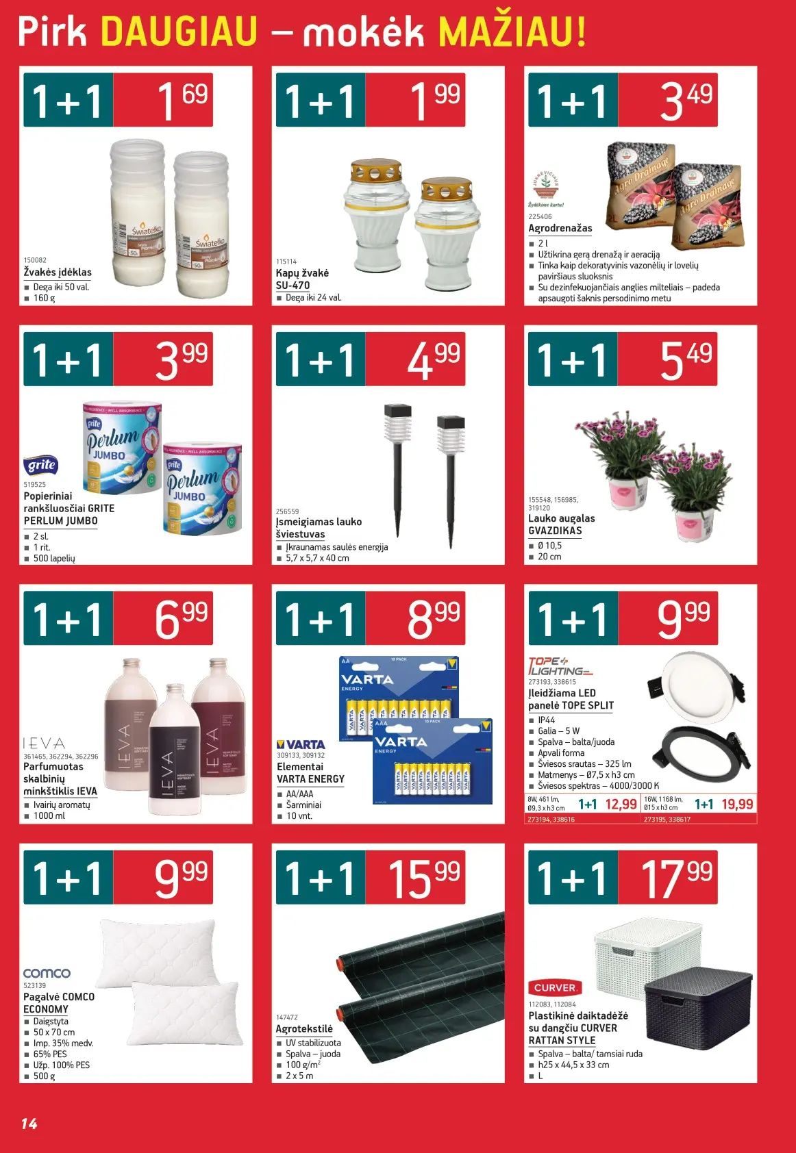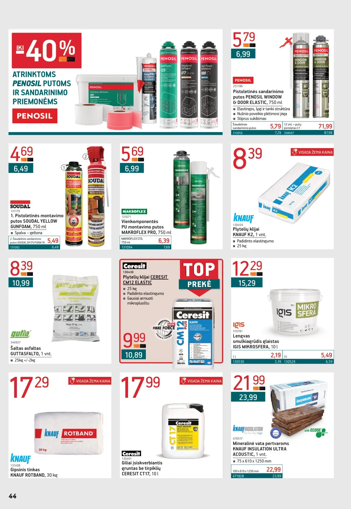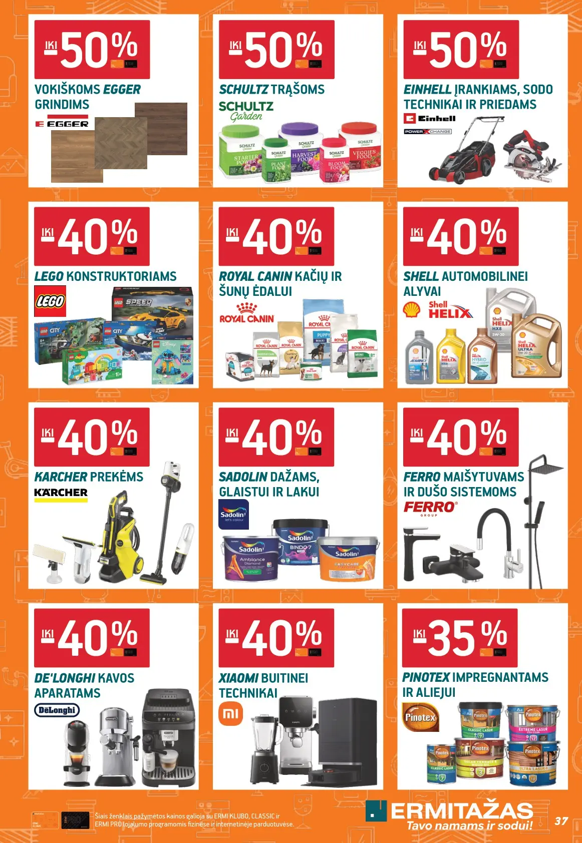 Leidinyje pateikiami pasiūlymai statybinėms medžiagoms, įrankiams, apdailos elementams, sodo ir laisvalaikio prekėms, buities reikmenims bei elektronikai. Čia rasite nuolaidas populiariausiems gamintojams ir prekių ženklams – nuo cemento iki šviestuvų, nuo grąžtų iki skalbimo mašinų.