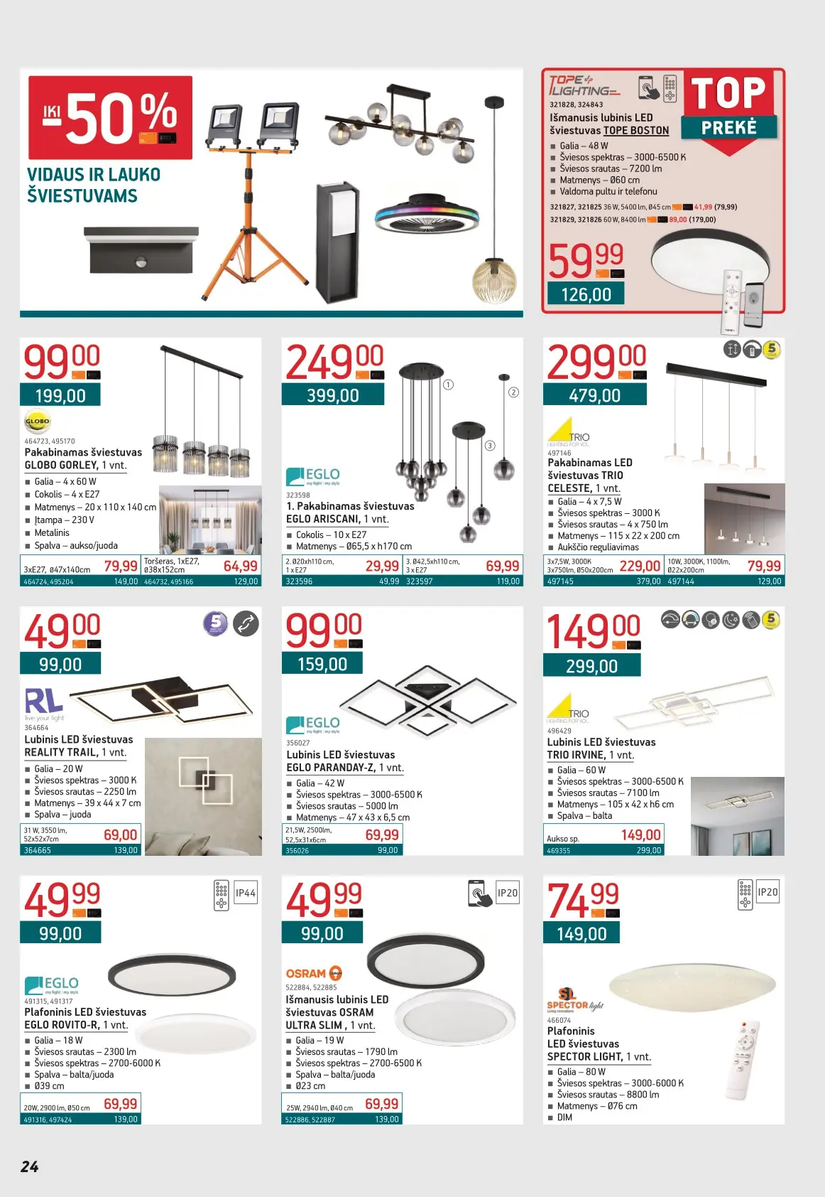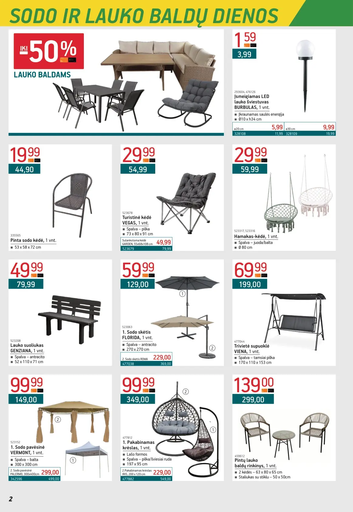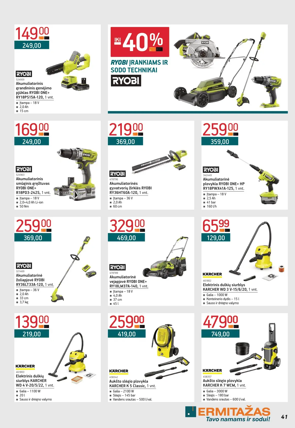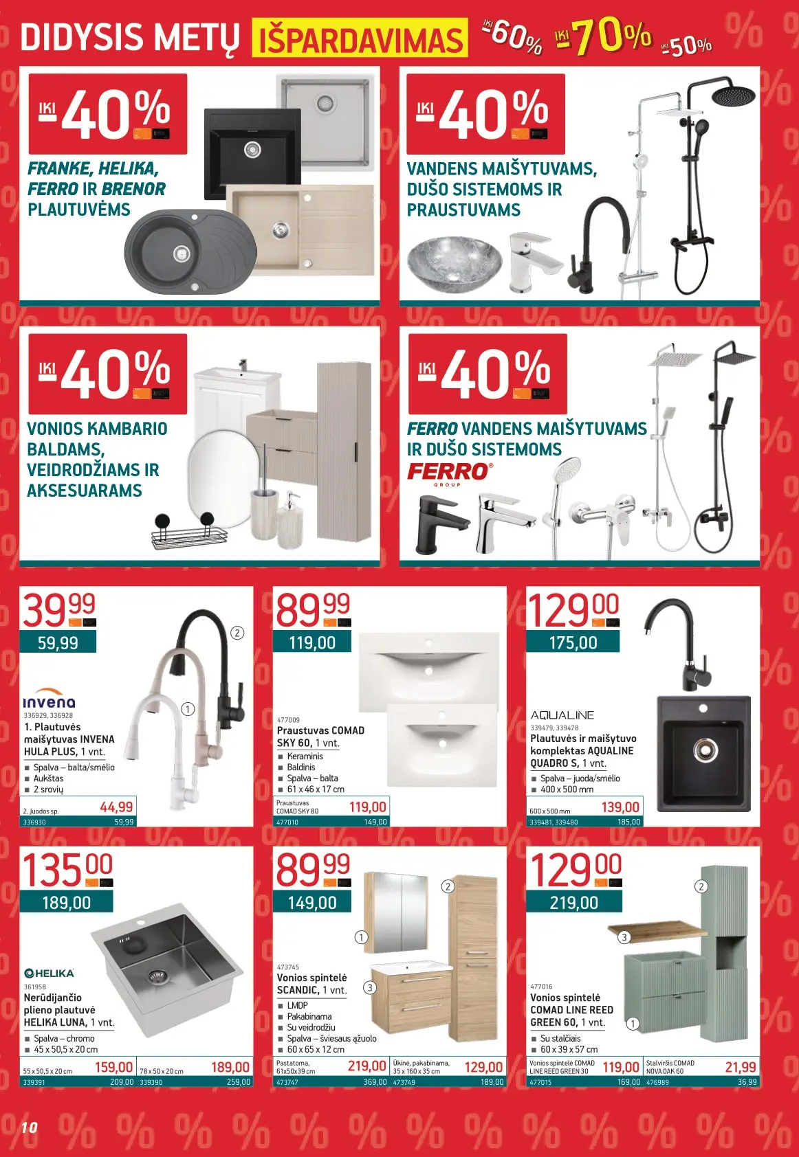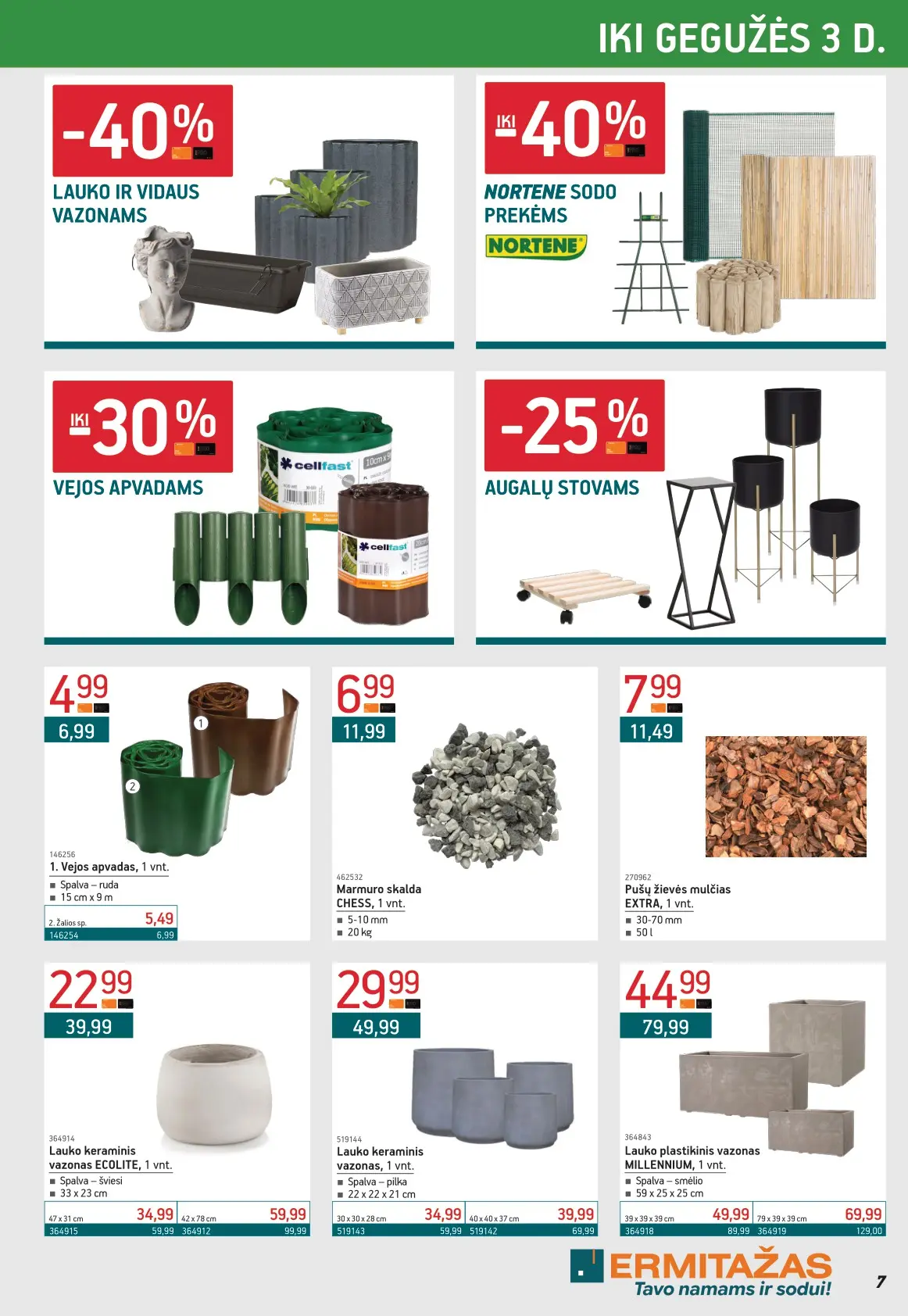 Leidinyje pateikiami pasiūlymai statybinėms medžiagoms, įrankiams, apdailos elementams, sodo ir laisvalaikio prekėms, buities reikmenims bei elektronikai. Čia rasite nuolaidas populiariausiems gamintojams ir prekių ženklams – nuo cemento iki šviestuvų, nuo grąžtų iki skalbimo mašinų.