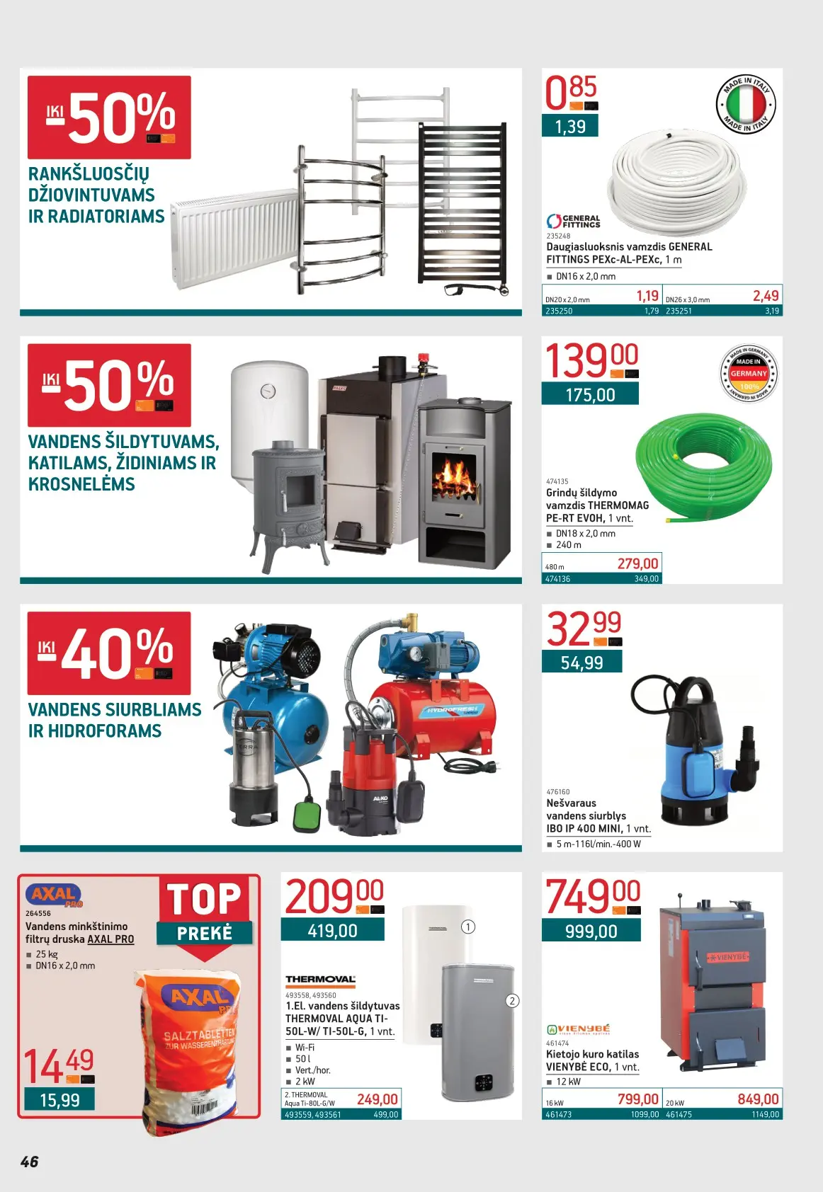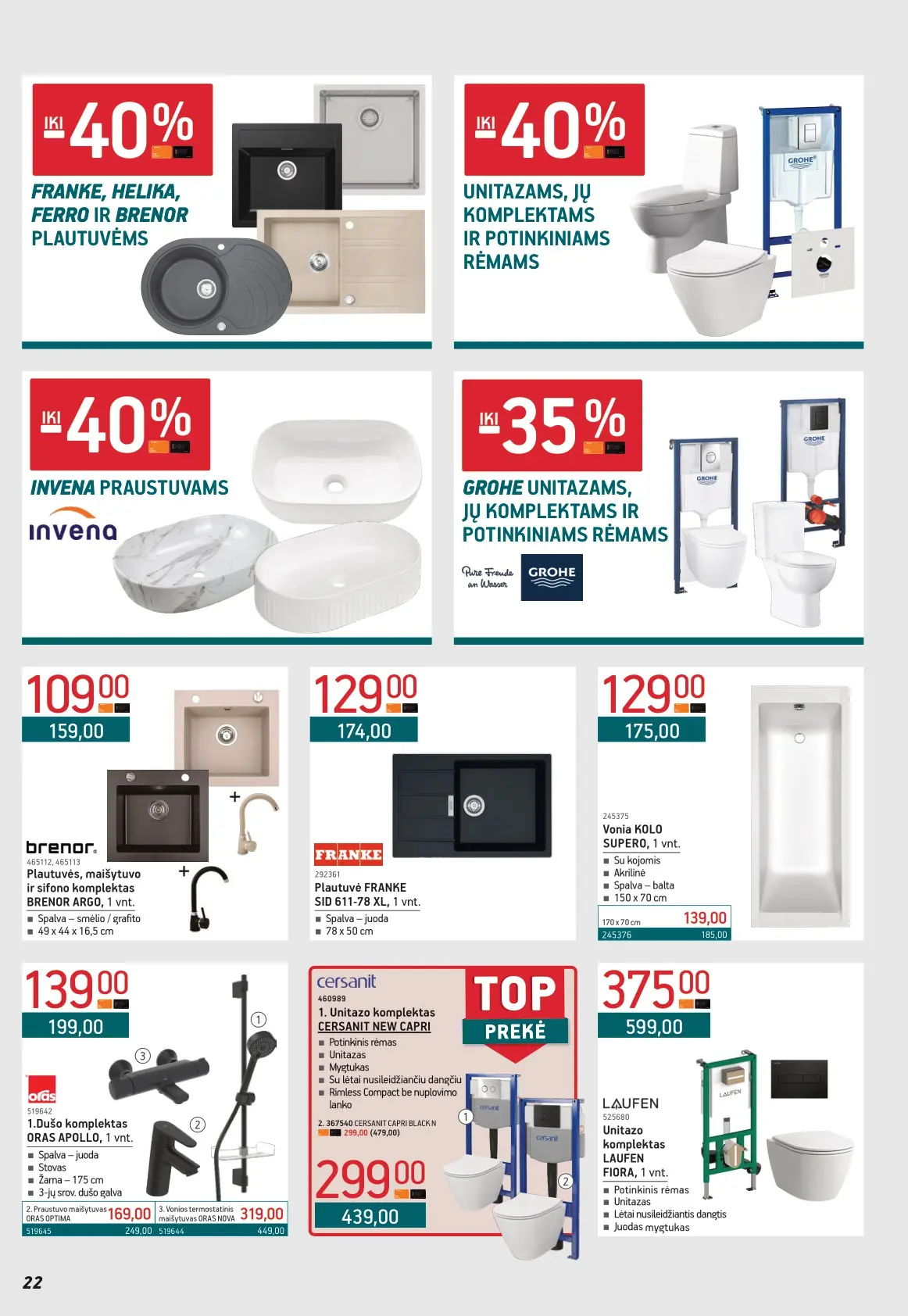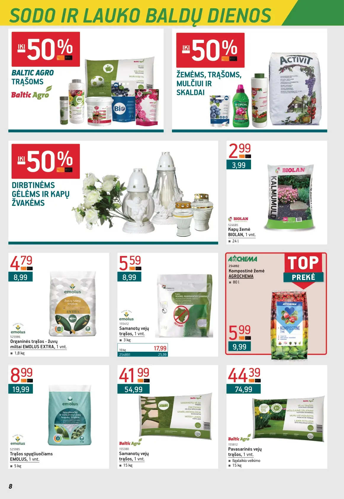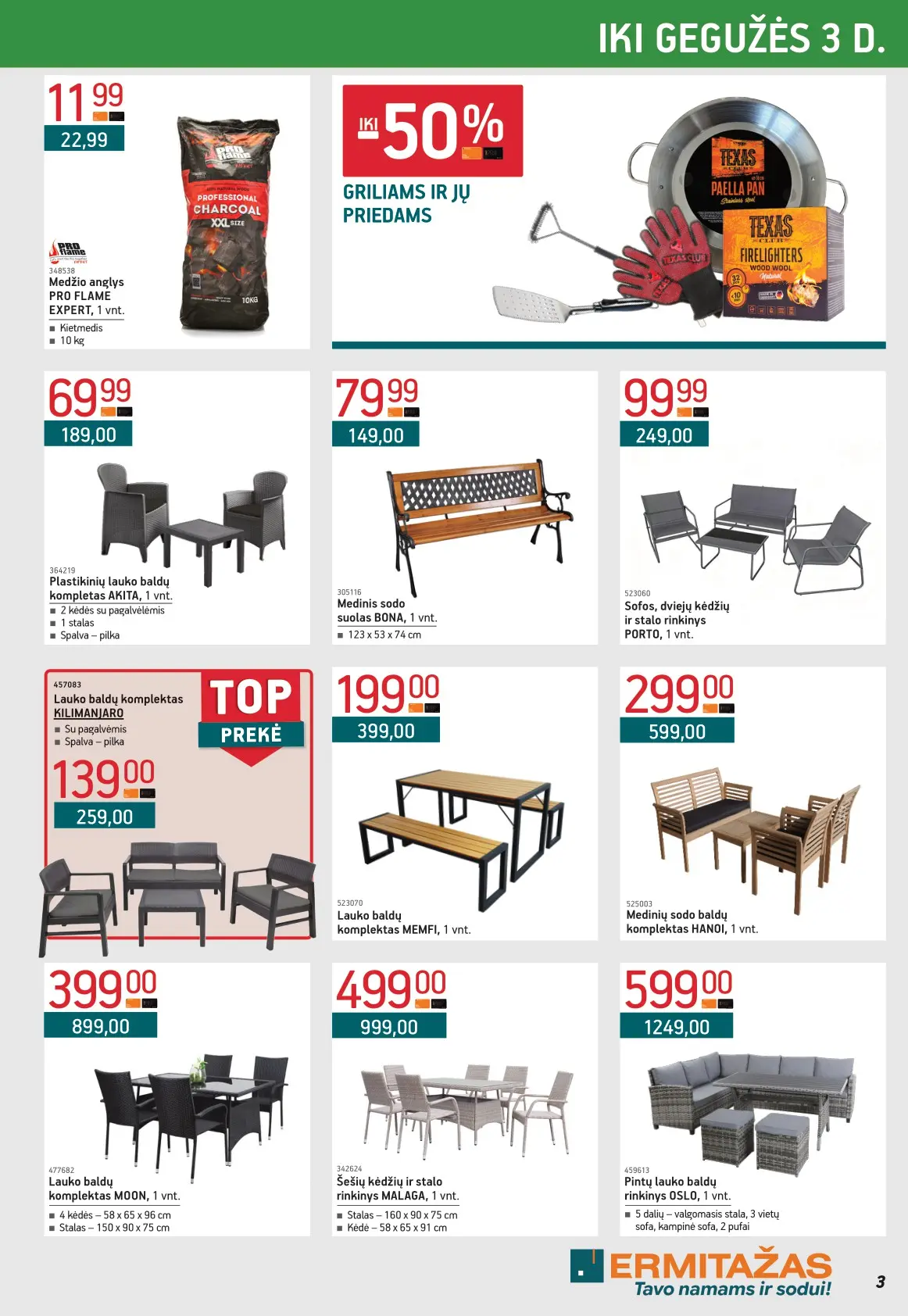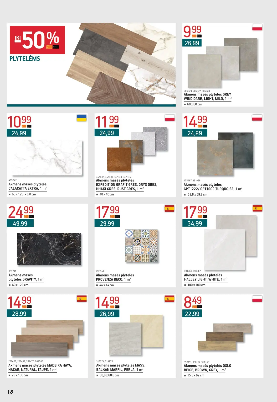 Leidinyje pateikiami pasiūlymai statybinėms medžiagoms, įrankiams, apdailos elementams, sodo ir laisvalaikio prekėms, buities reikmenims bei elektronikai. Čia rasite nuolaidas populiariausiems gamintojams ir prekių ženklams – nuo cemento iki šviestuvų, nuo grąžtų iki skalbimo mašinų.