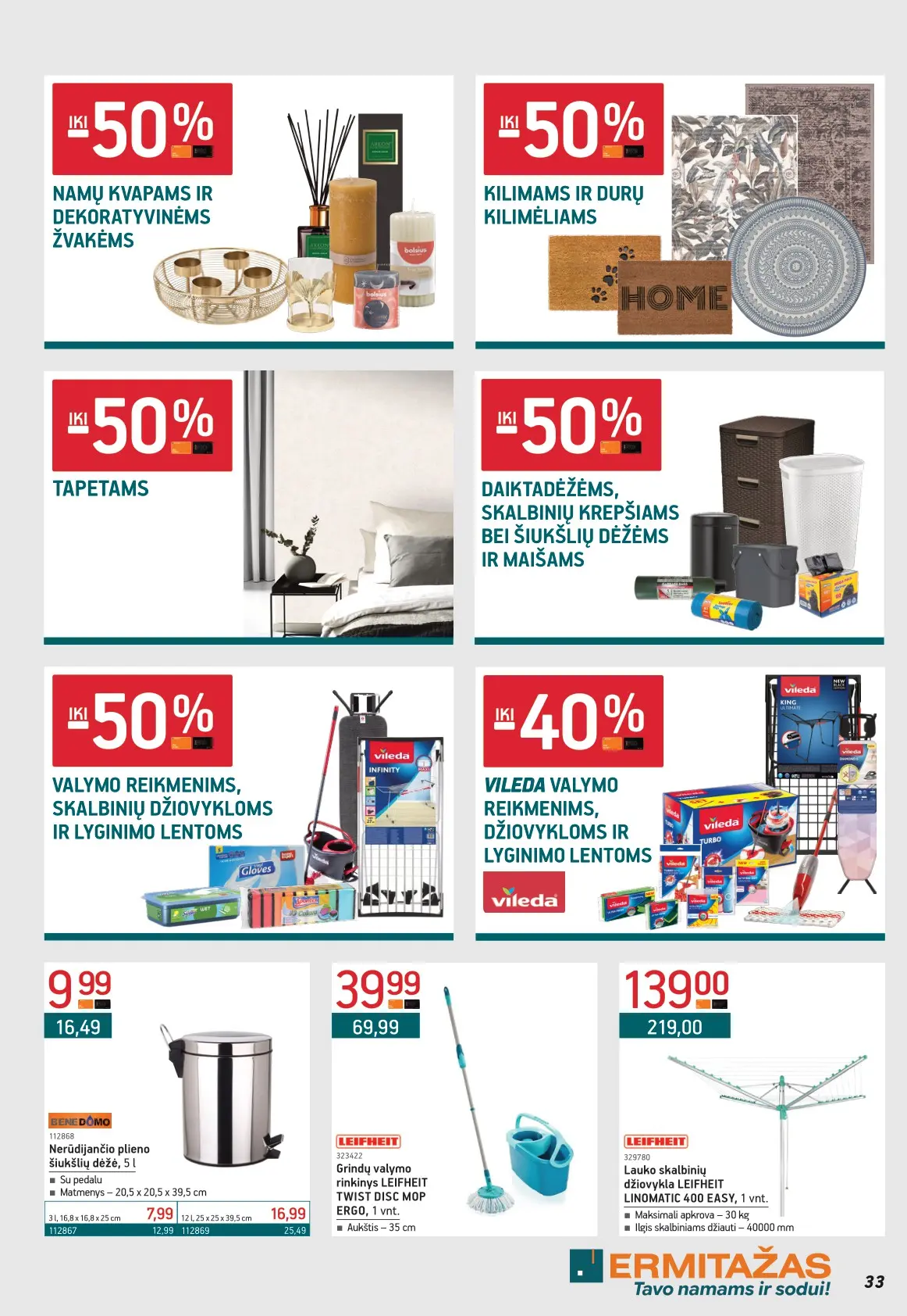 Peržiūrėję ERMITAŽO leidinį galėsite lengviau suplanuoti savo pirkinius. Tai padės išvengti impulsyvaus apsipirkimo ir leis įsigyti kokybiškas prekes palankesnėmis kainomis. Leidiniai nuolat atnaujinami, o nuolaidos taikomos tiek fizinėse parduotuvėse, tiek ir internetu.