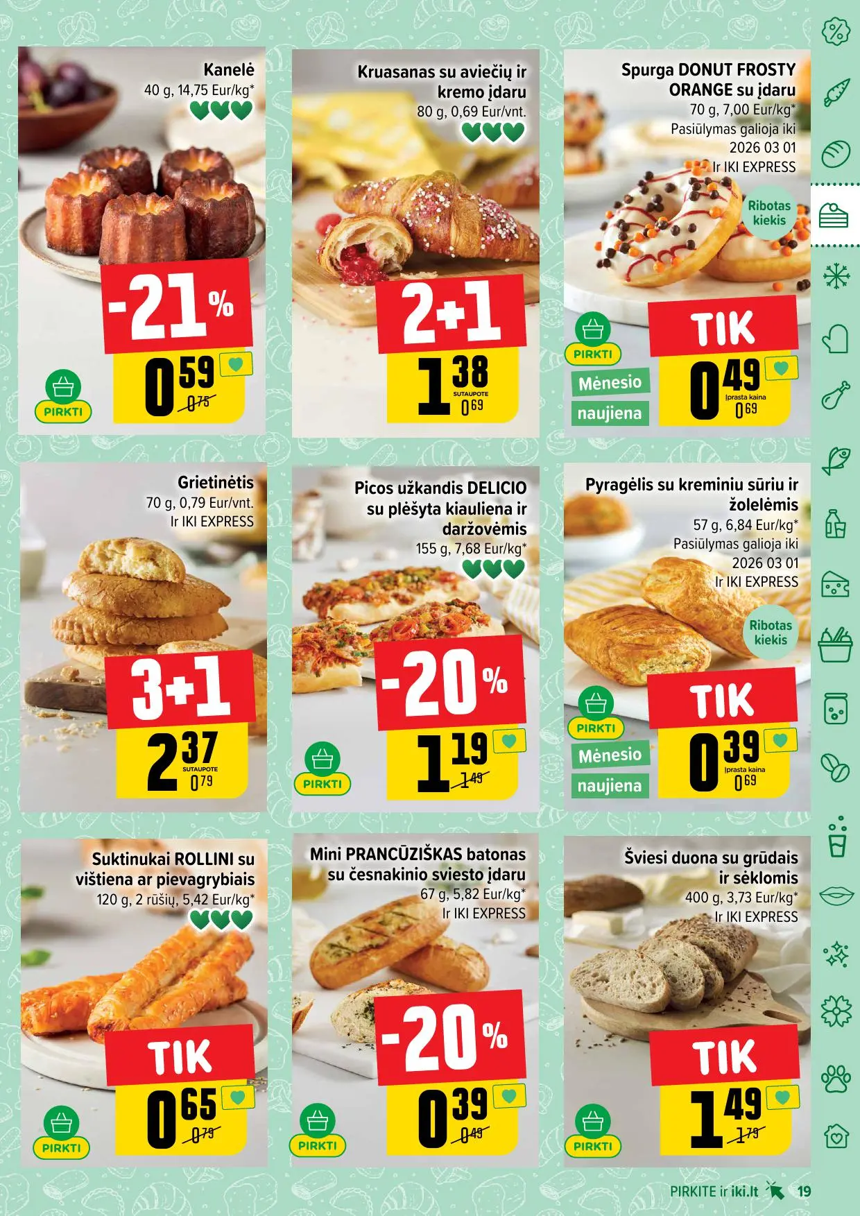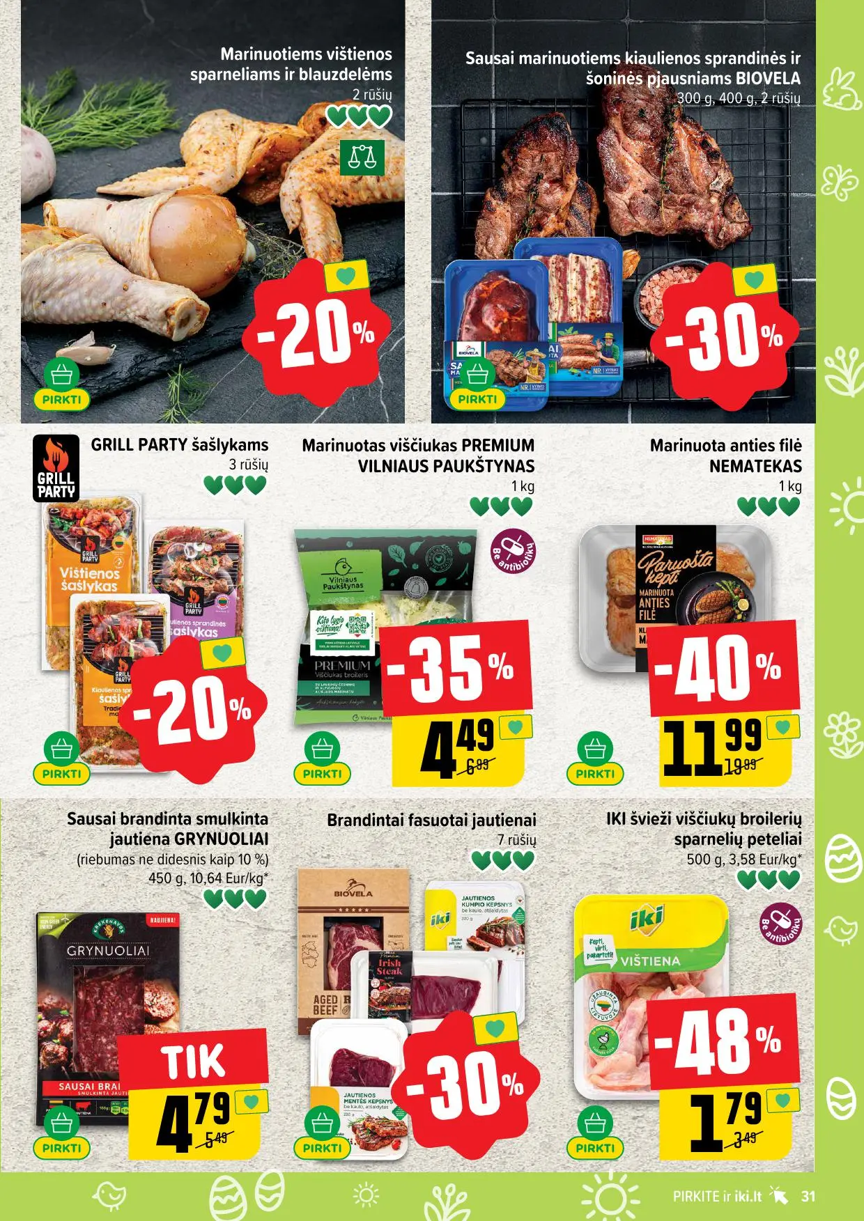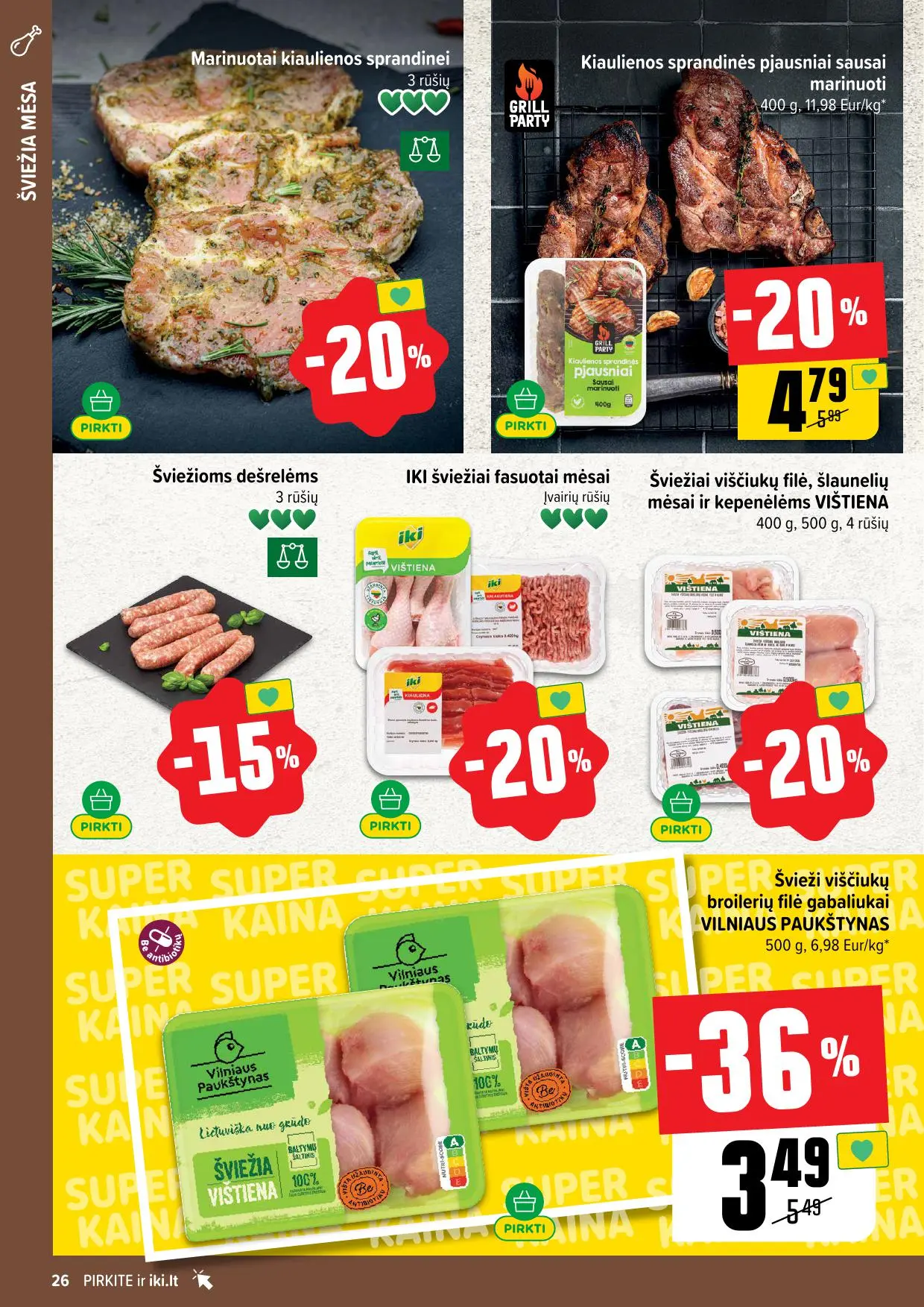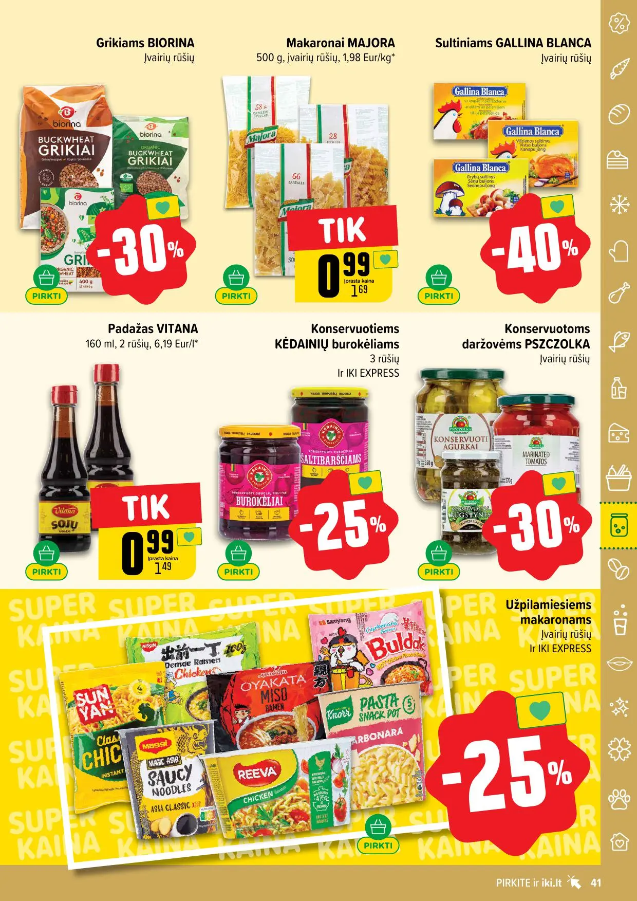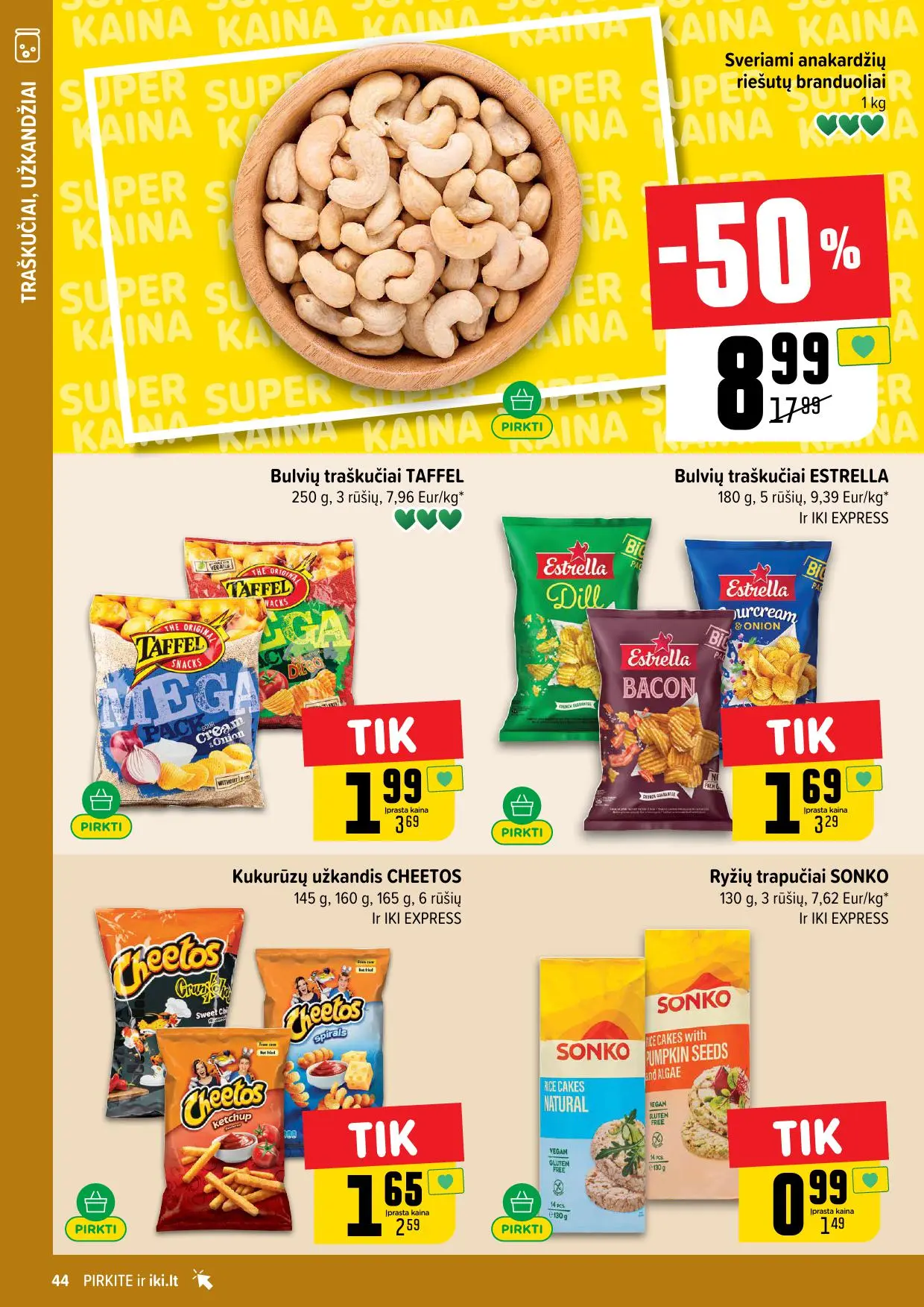 Leidinyje pateikiamos savaitės akcijos su didžiausiomis nuolaidomis: mėsai, pieno produktams, kepiniams, saldumynams, gėrimams, gyvūnų prekėms ir dar daugiau. Dauguma nuolaidų taikomos tik su IKI lojalumo kortele, tad nepamirškite jos pasiimti!