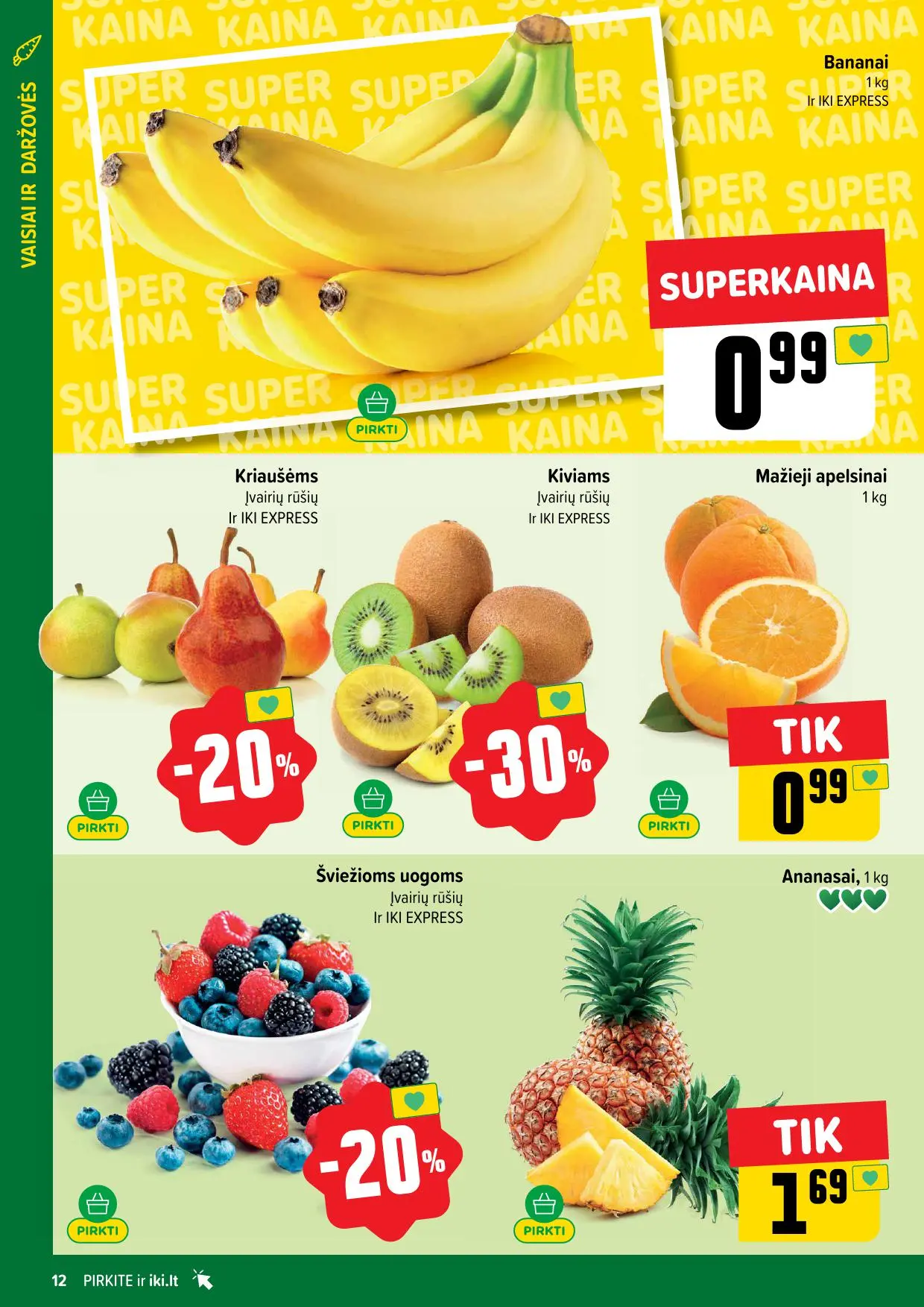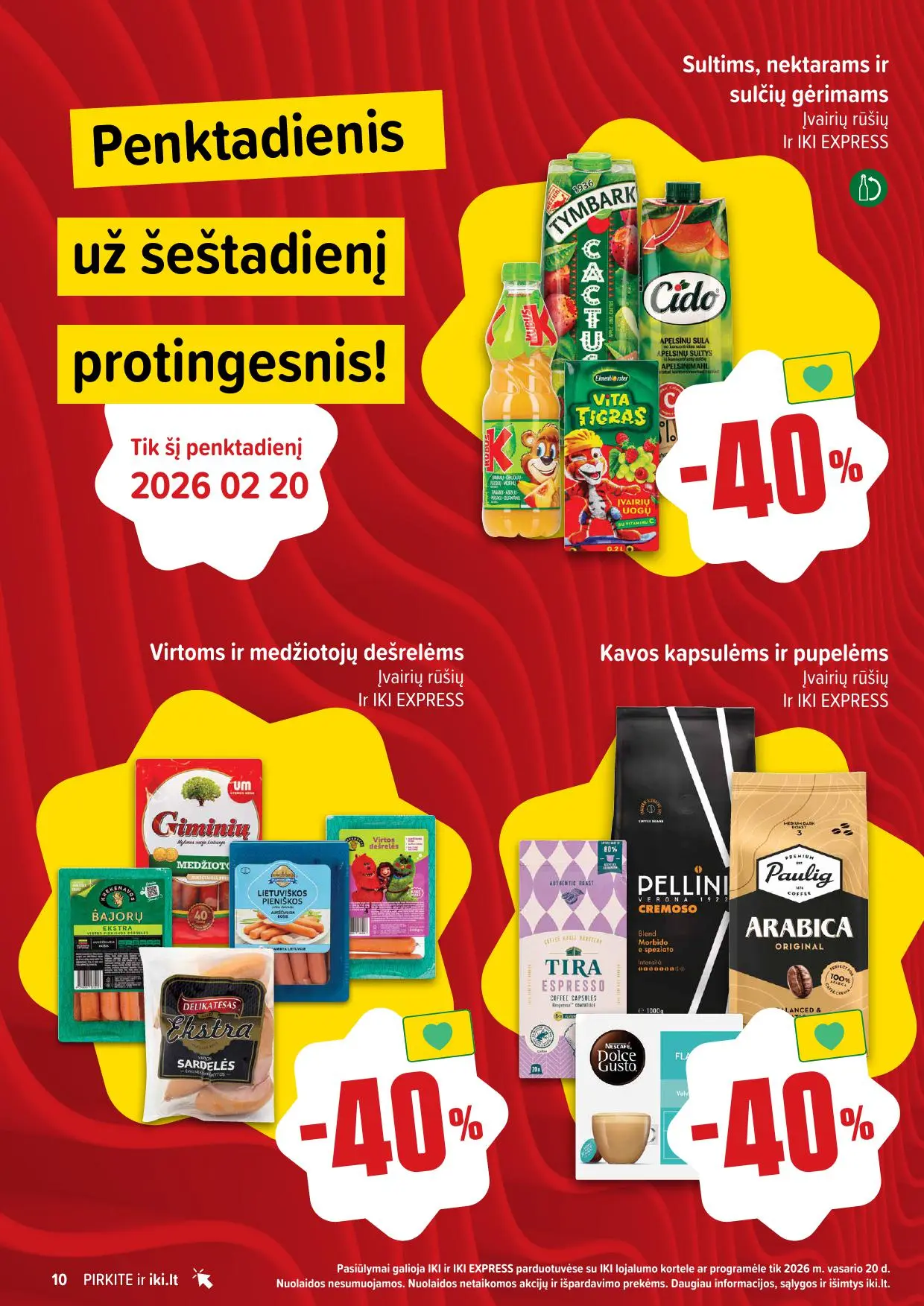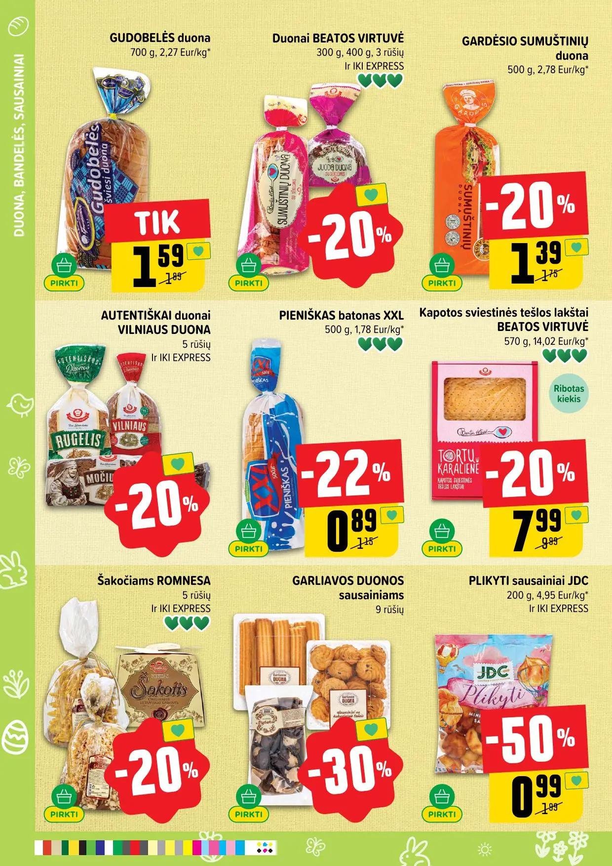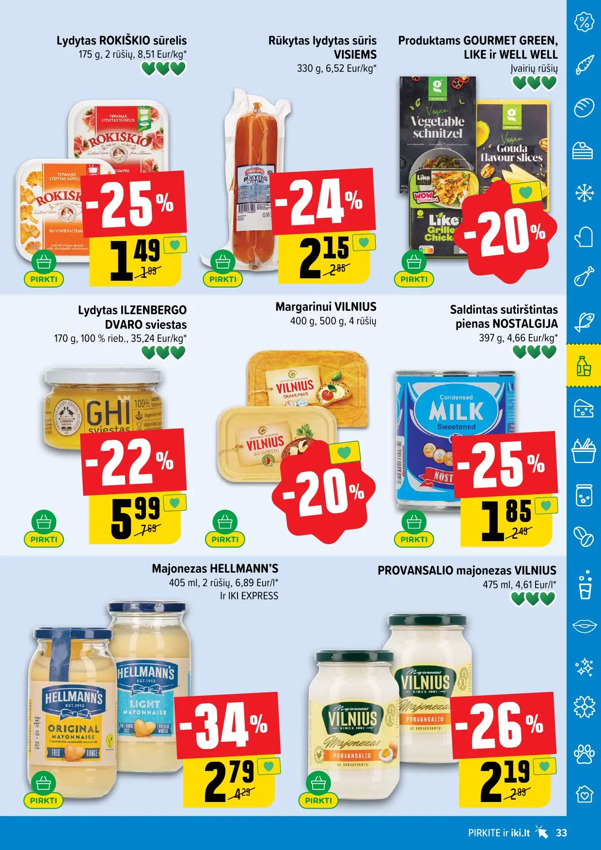 Leidinyje pateikiamos savaitės akcijos su didžiausiomis nuolaidomis: mėsai, pieno produktams, kepiniams, saldumynams, gėrimams, gyvūnų prekėms ir dar daugiau. Dauguma nuolaidų taikomos tik su IKI lojalumo kortele, tad nepamirškite jos pasiimti!