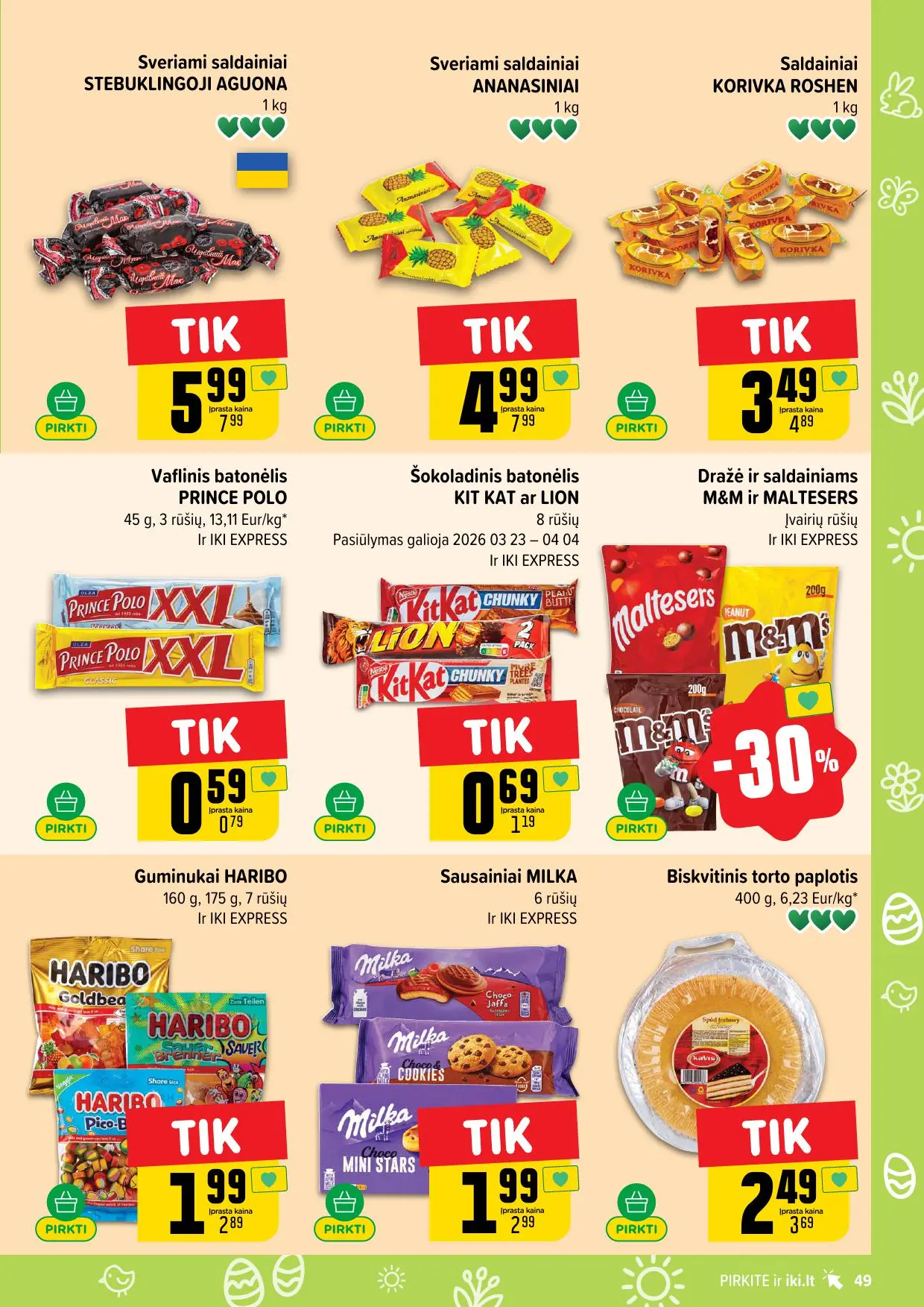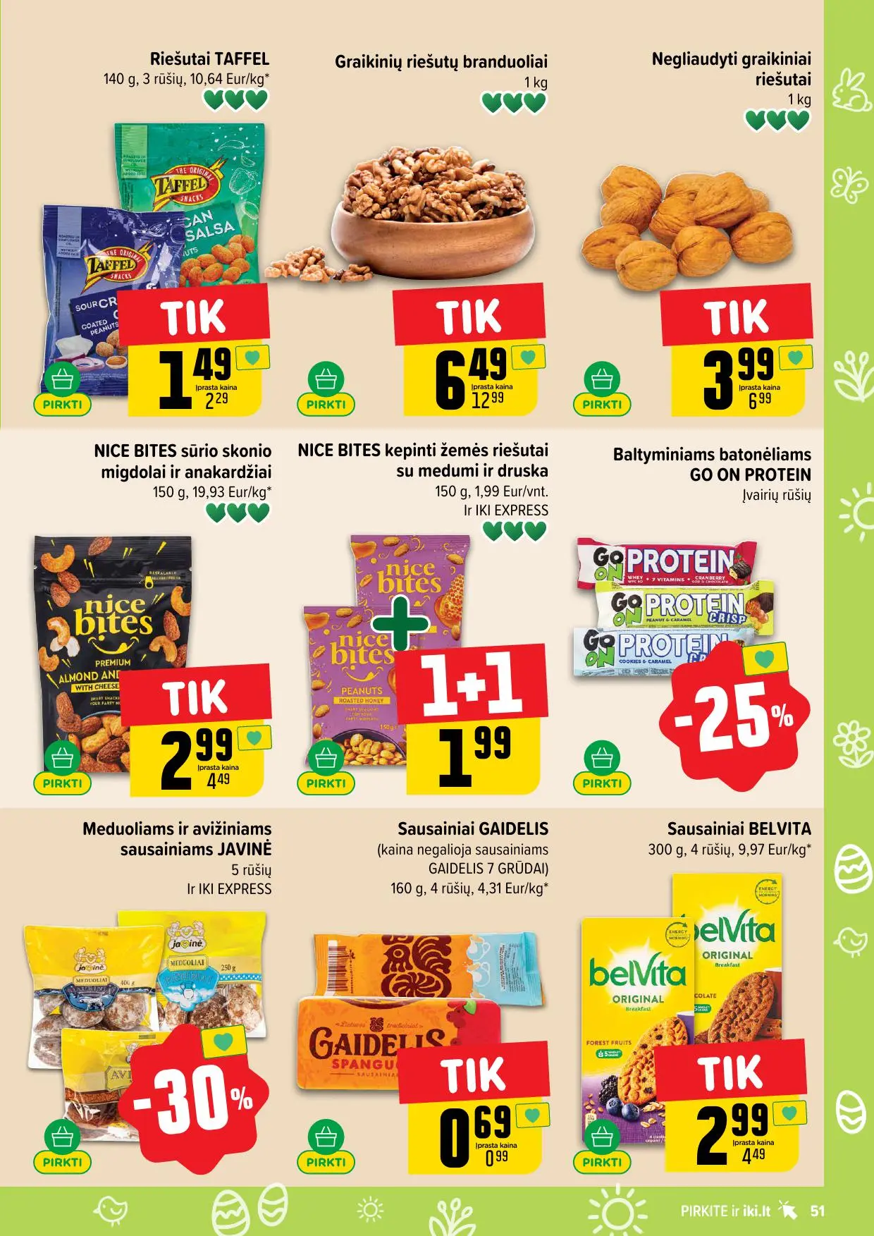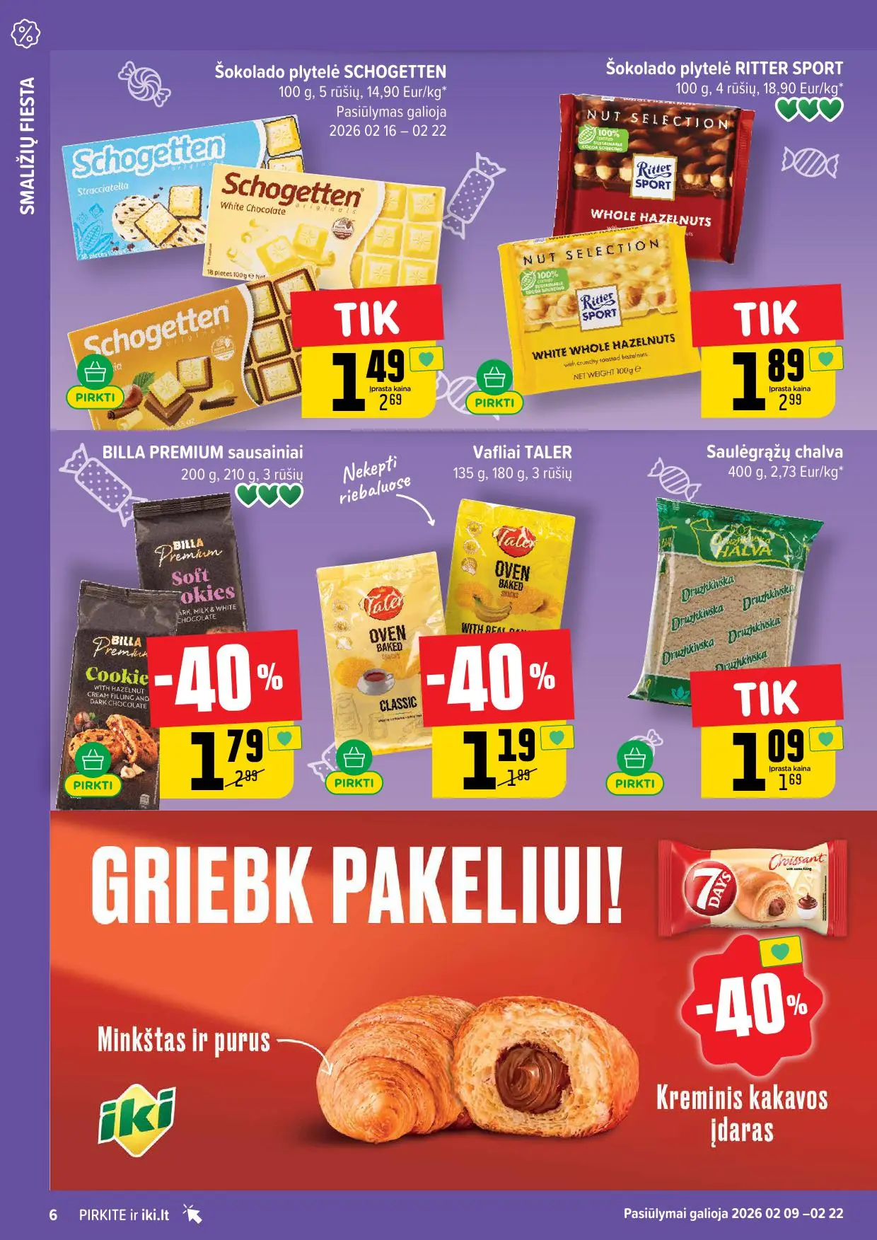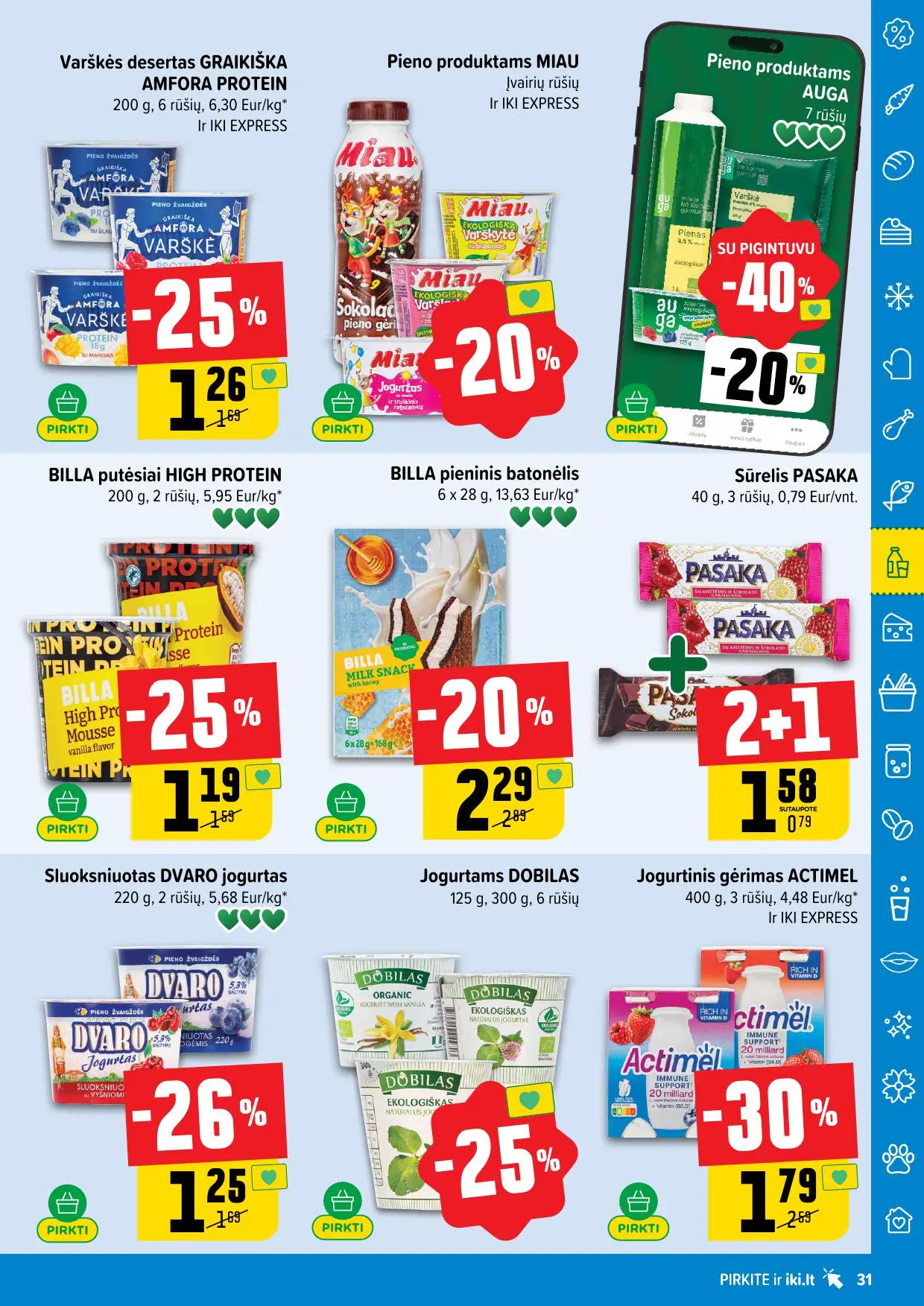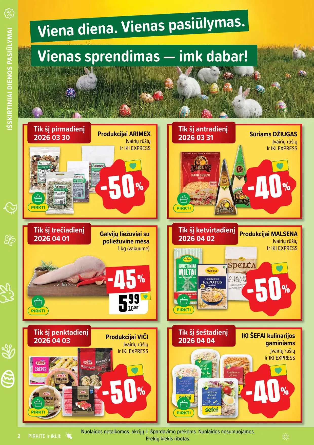 Leidinyje pateikiamos savaitės akcijos su didžiausiomis nuolaidomis: mėsai, pieno produktams, kepiniams, saldumynams, gėrimams, gyvūnų prekėms ir dar daugiau. Dauguma nuolaidų taikomos tik su IKI lojalumo kortele, tad nepamirškite jos pasiimti!