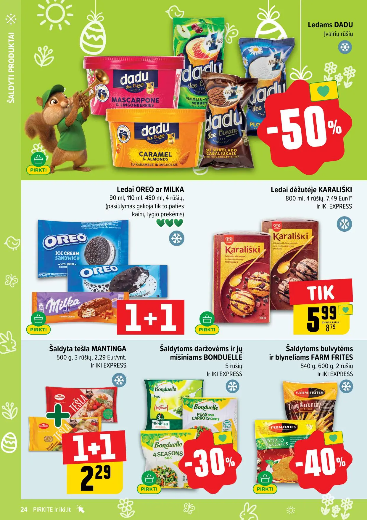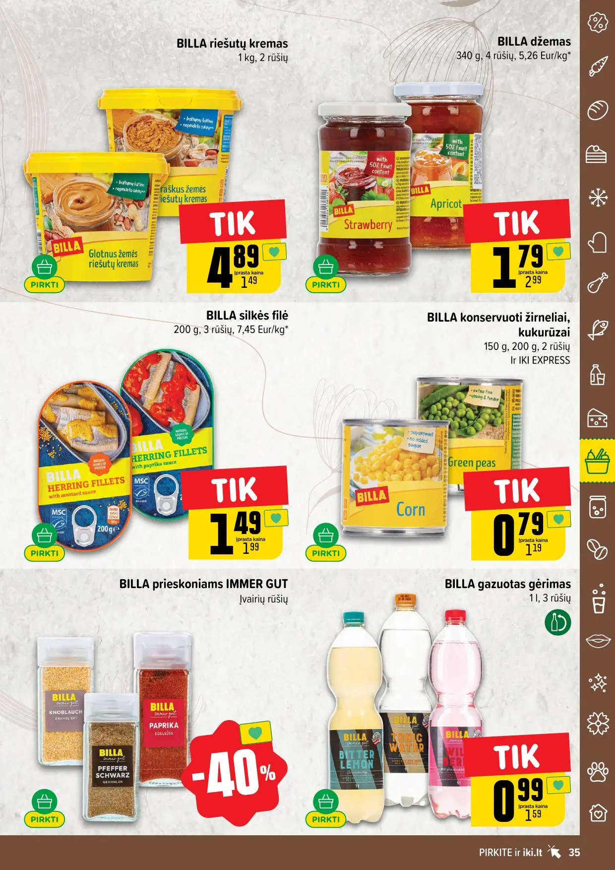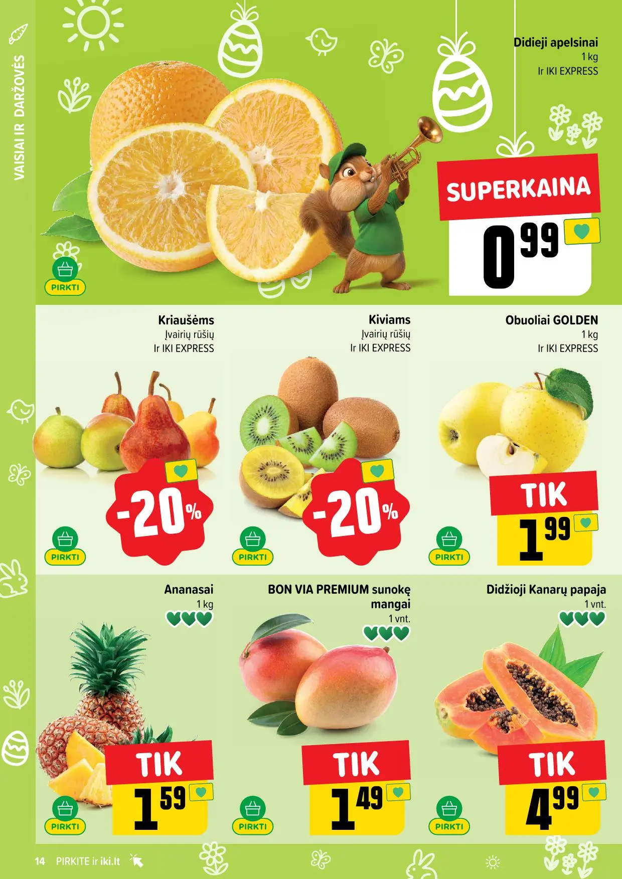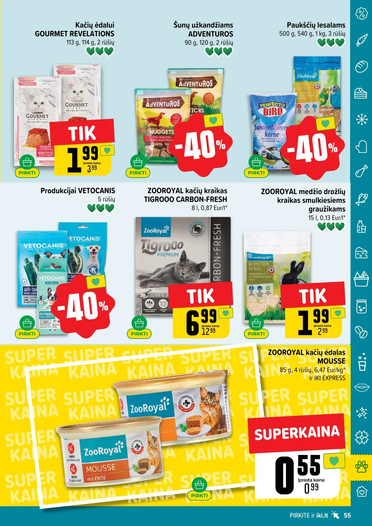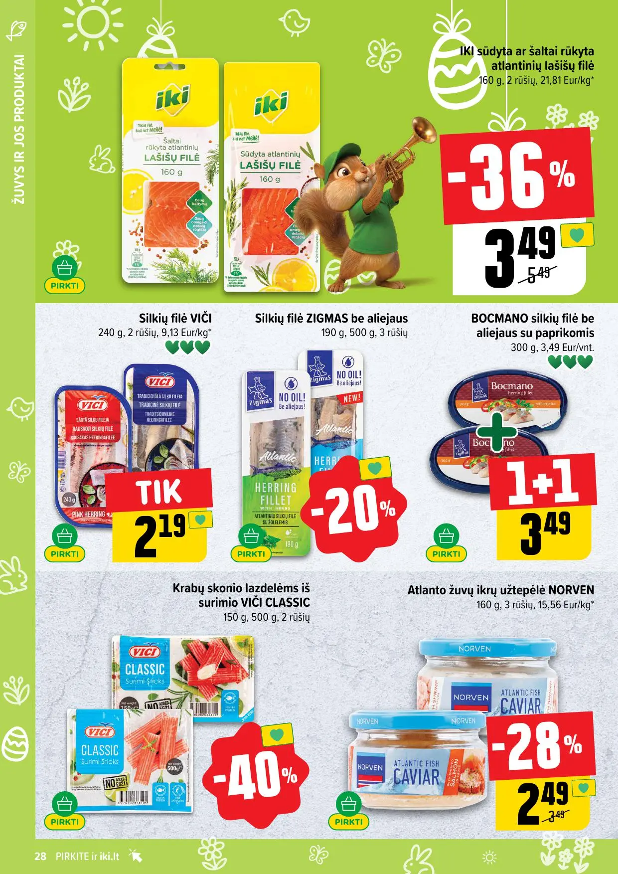 Leidinyje pateikiamos savaitės akcijos su didžiausiomis nuolaidomis: mėsai, pieno produktams, kepiniams, saldumynams, gėrimams, gyvūnų prekėms ir dar daugiau. Dauguma nuolaidų taikomos tik su IKI lojalumo kortele, tad nepamirškite jos pasiimti!