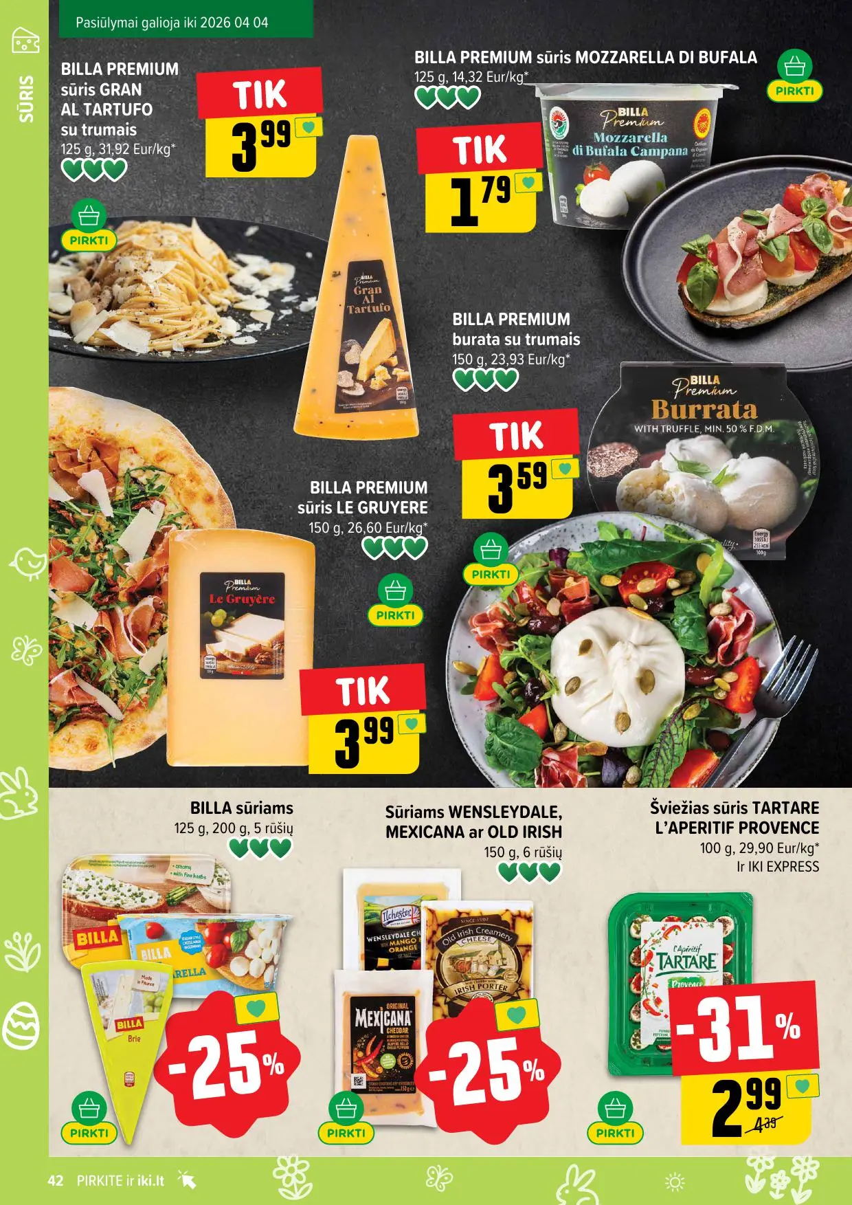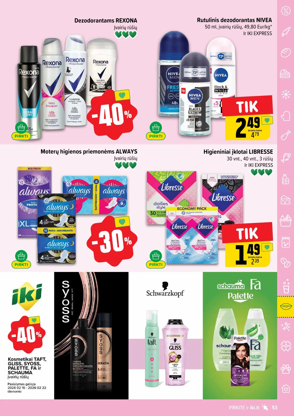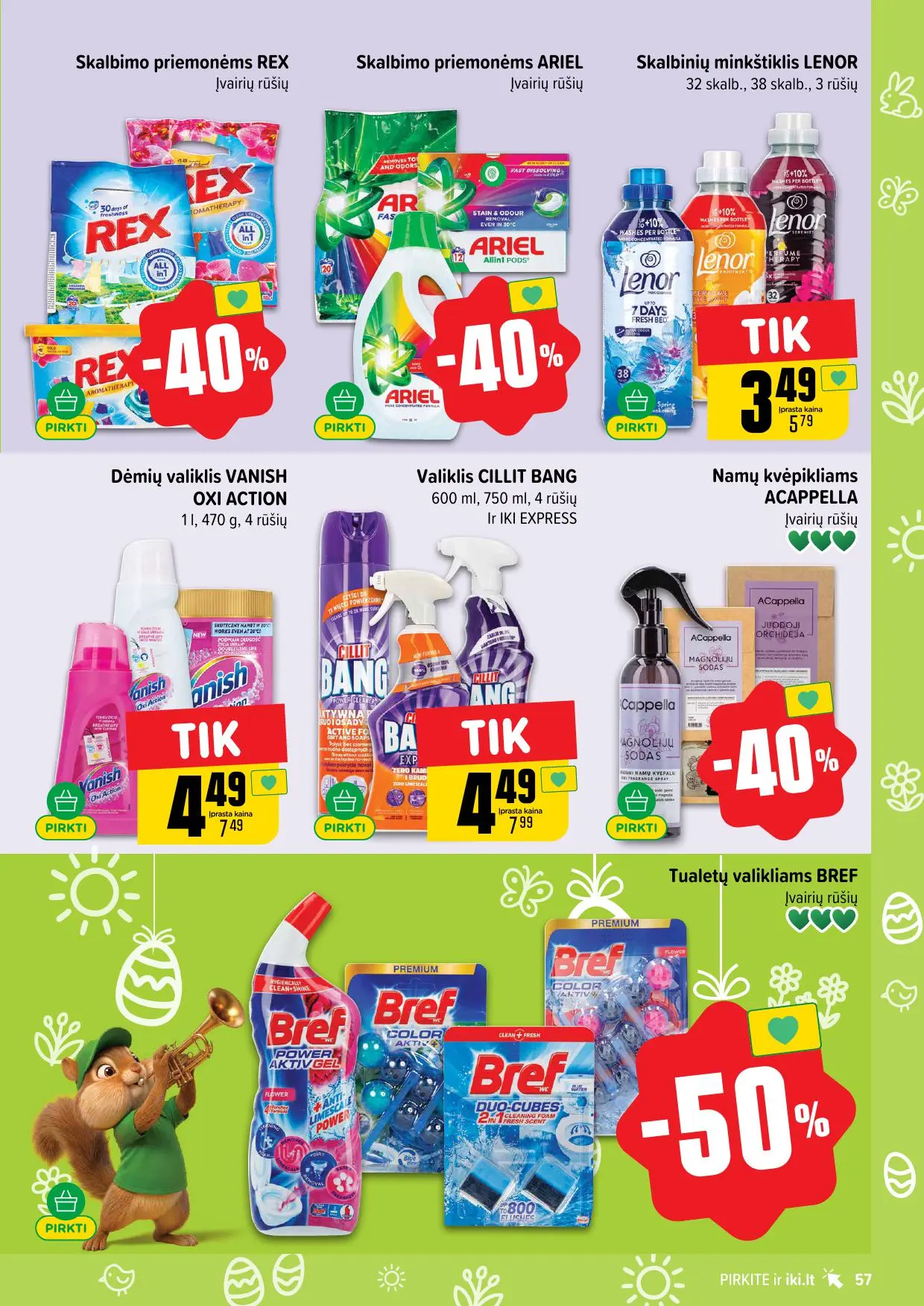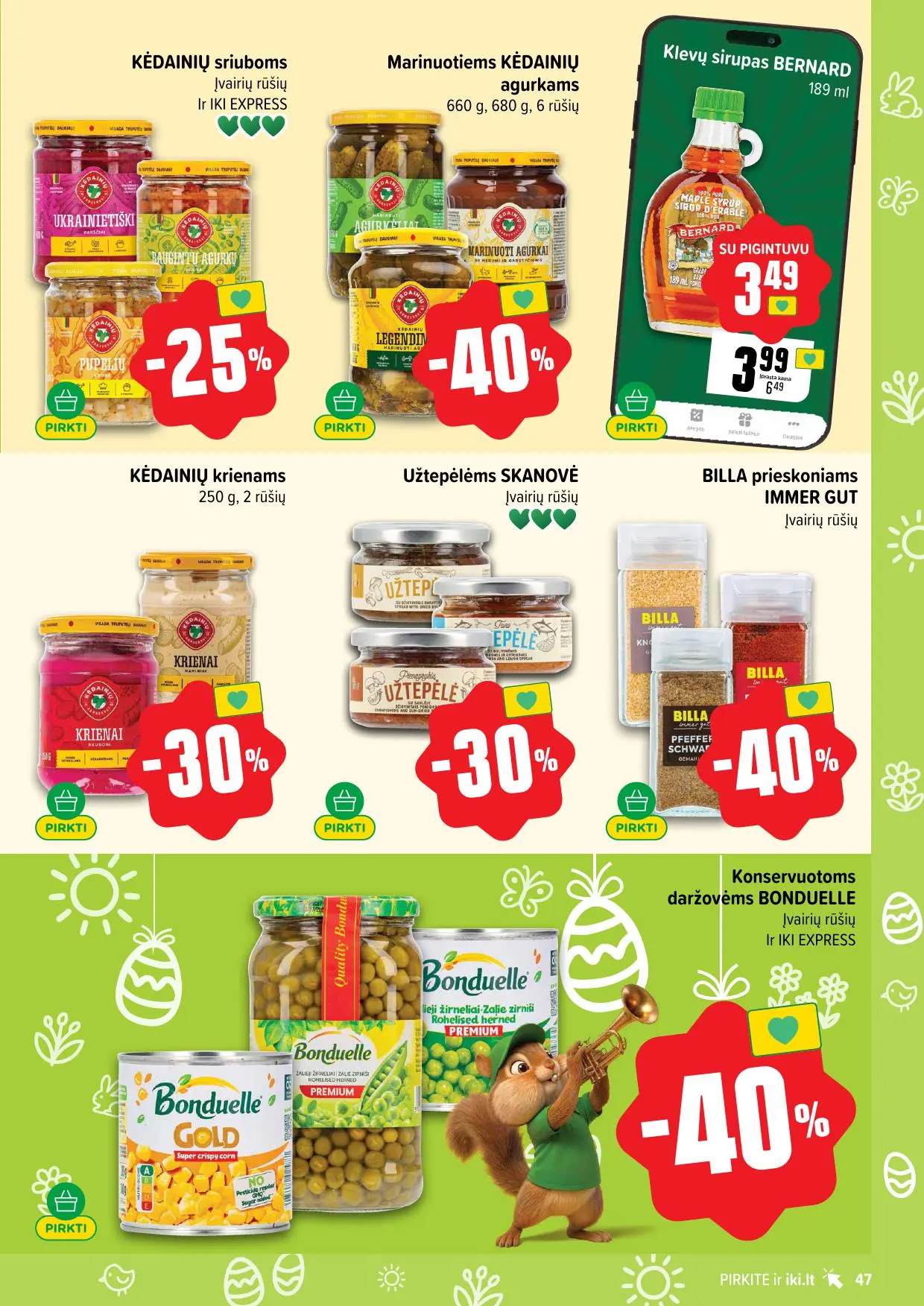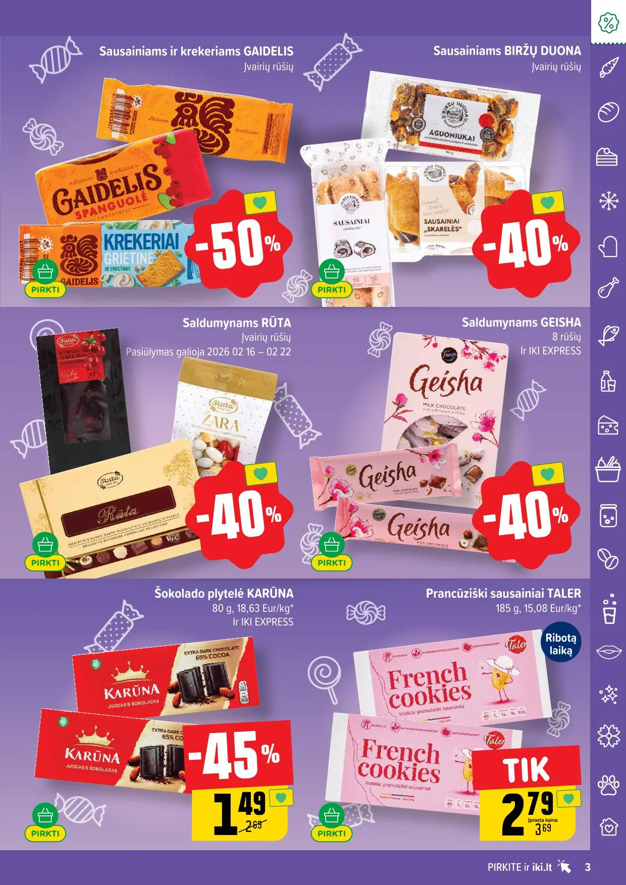Leidinyje pateikiamos savaitės akcijos su didžiausiomis nuolaidomis: mėsai, pieno produktams, kepiniams, saldumynams, gėrimams, gyvūnų prekėms ir dar daugiau. Dauguma nuolaidų taikomos tik su IKI lojalumo kortele, tad nepamirškite jos pasiimti!