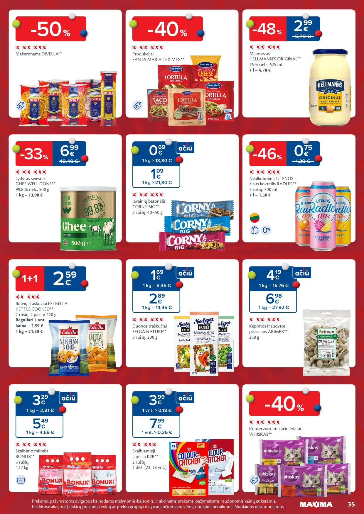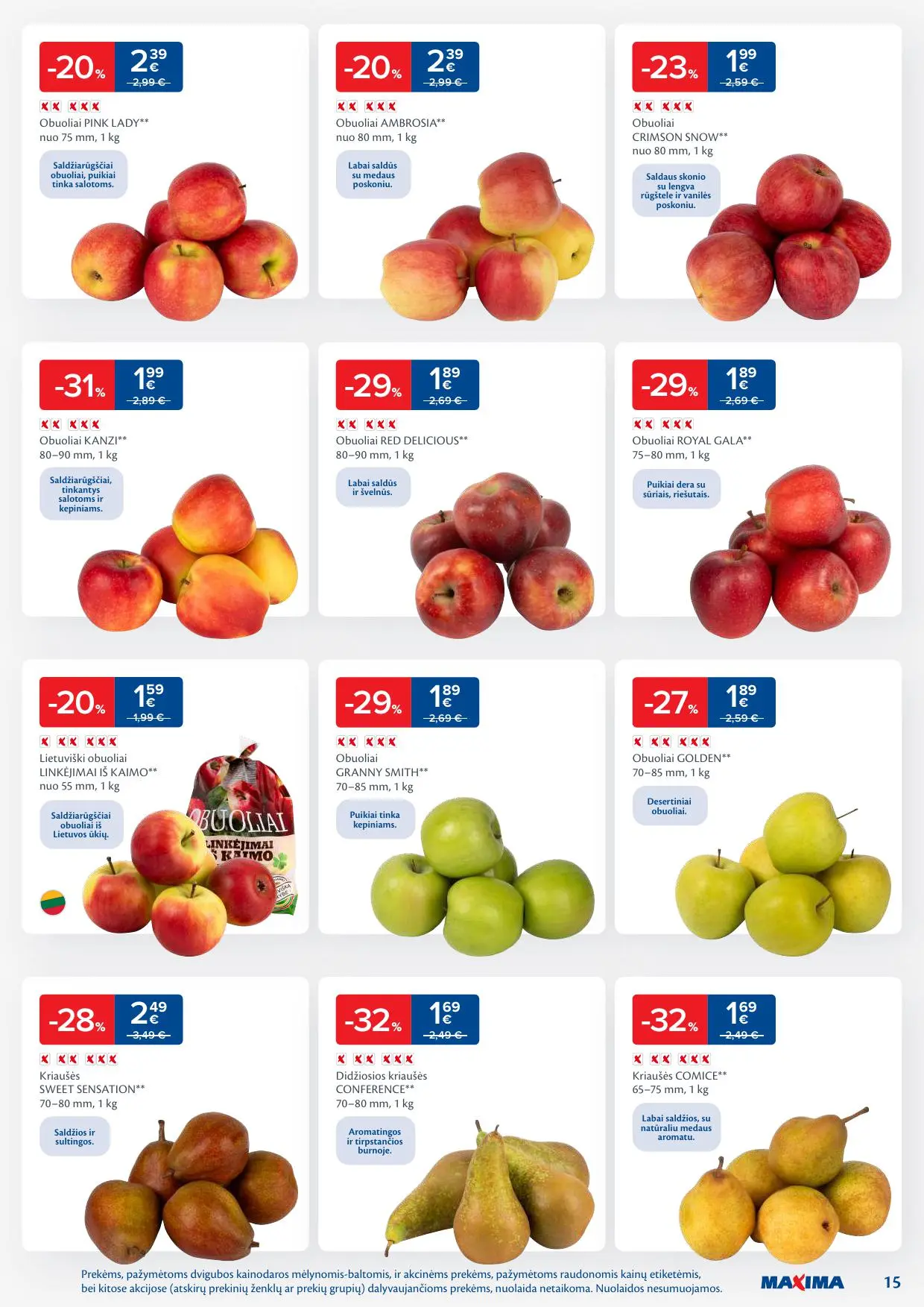 MAXIMA akcijų leidinys – tai patikimiausias būdas sužinoti, kokie pasiūlymai šiuo metu galioja populiariausiame Lietuvos prekybos tinkle. Čia rasite savaitės pasiūlymus, išskirtines akcijas ir nuolaidas įvairioms prekių kategorijoms: nuo šviežių vaisių ir daržovių iki pieno produktų, mėsos, žuvies, buities ir namų apyvokos prekių.